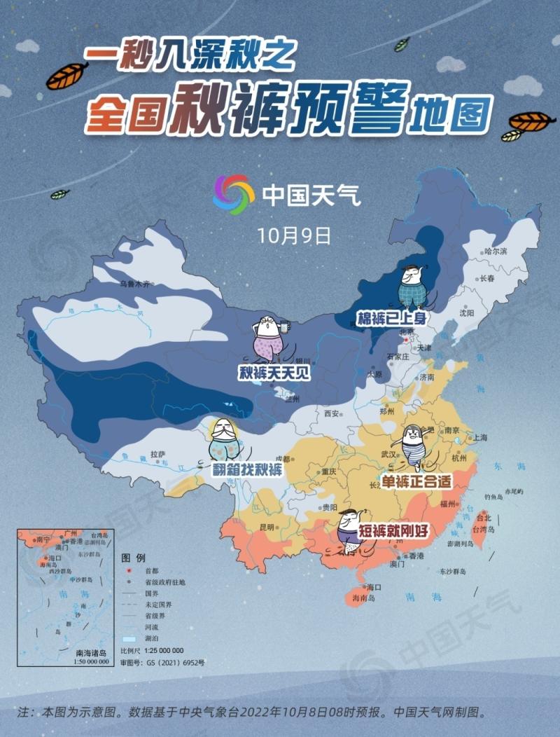 最后,为大家的冷暖操碎心的中国天气网再次温馨提示:一叶落知天下秋裤!不管是因为寒冷的摆布,还是下降的温度;不管是爸妈的嘱咐,还是爱人的催促;早早穿上秋裤,及时增添衣物,要风度更要温度!