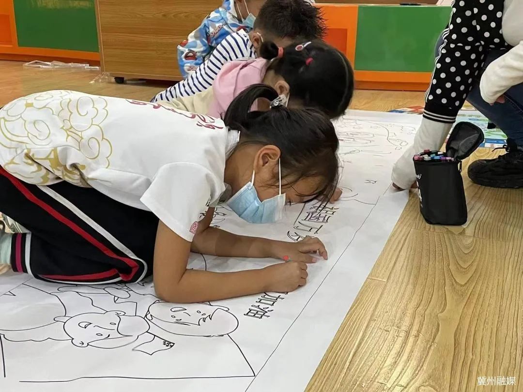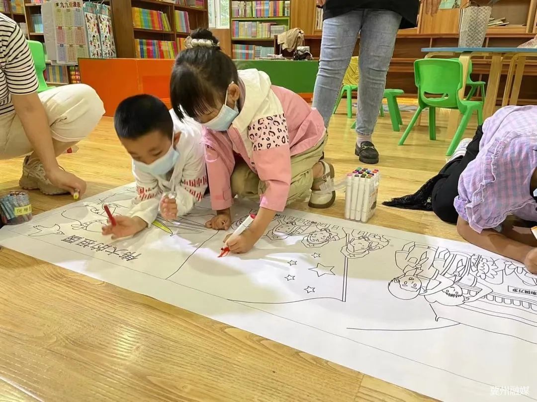 小朋友们用水彩笔为画卷涂上颜色。冀州区新华书店供图
