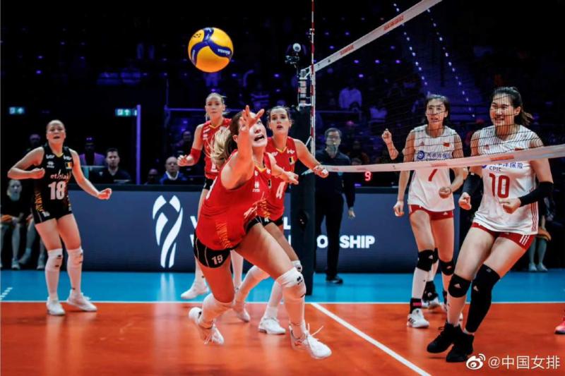第三局,双方打得比较胶着,比分交替上升,最终以27比25锁定胜局,直落三局战胜比利时队,晋级世锦赛八强。