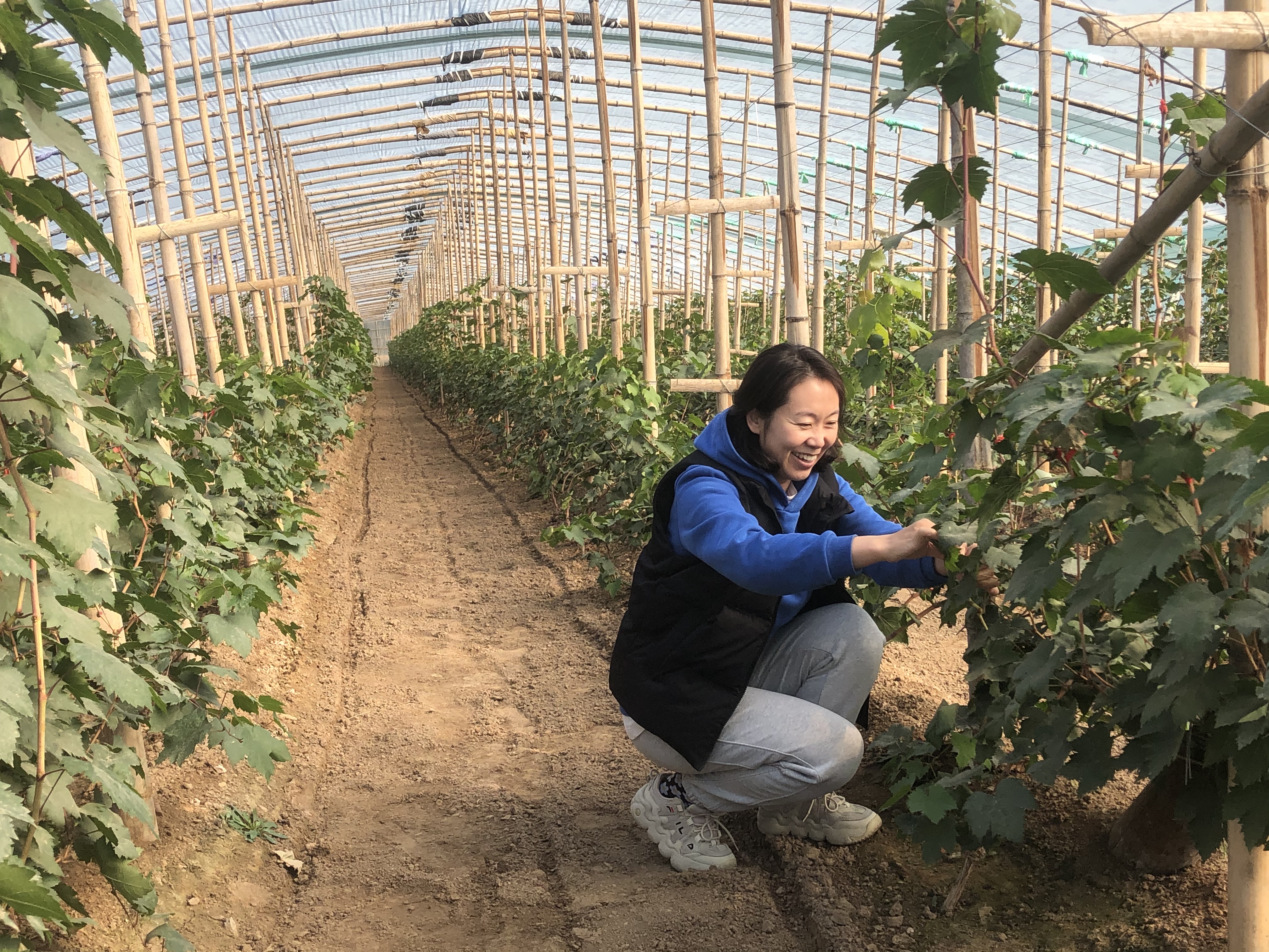 时至深秋,天气骤冷,大地里的果蔬大多已采摘完毕。但深州市榆科镇智慧农业果蔬基地里,却是一派生机盎然的景象:一座座果蔬大棚整齐排列,大棚内葡萄藤郁郁葱葱,油菜青菜翠绿欲滴。远处大棚的一角,几个果农竟然在“玩手机”……