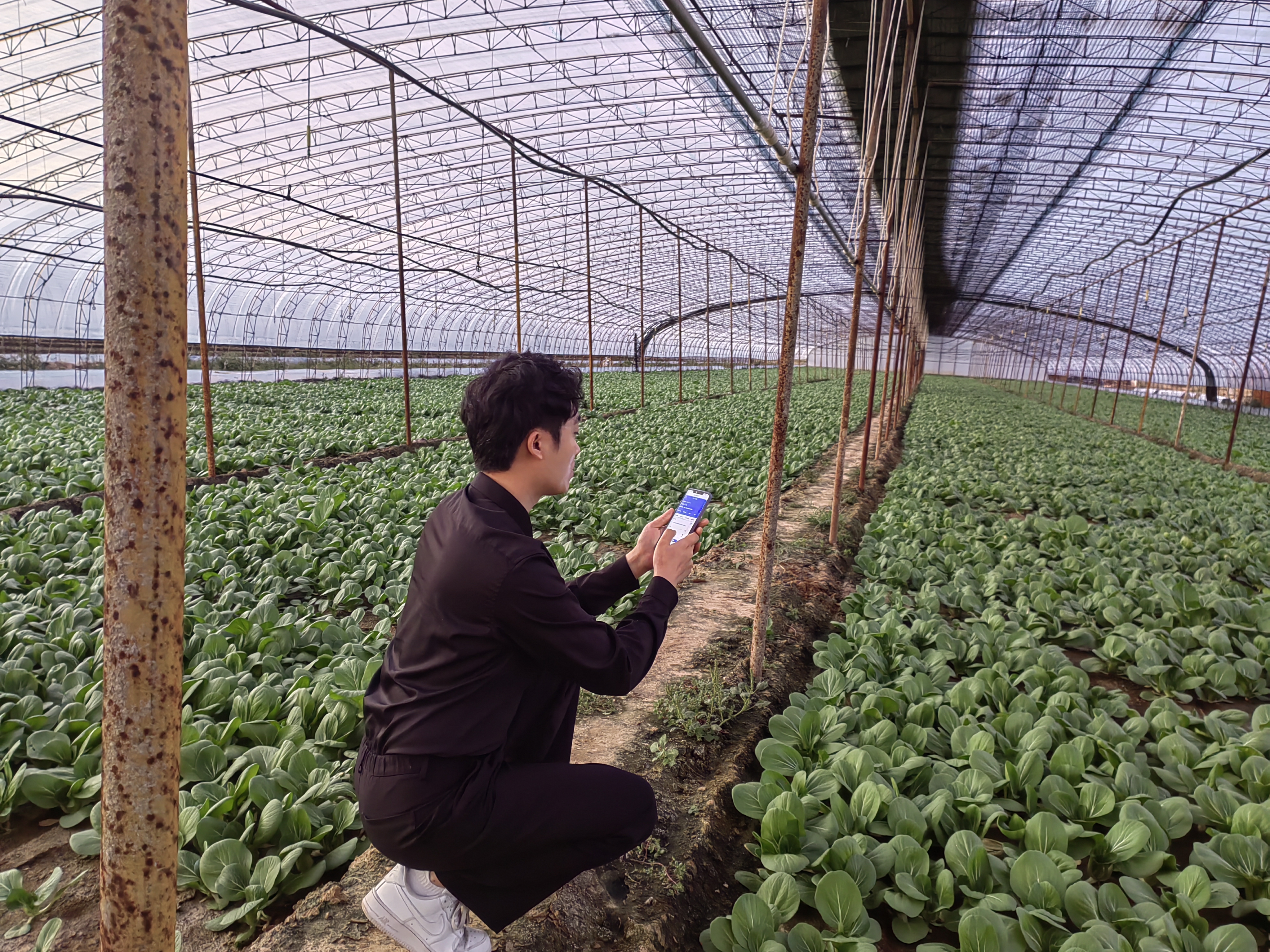 走近一看,遍布在棚内各个角落的高清摄像头和传感器正在实时监测棚内种苗的生长状况,棚内土壤水分、温度和空气湿度等数据实时传输到管理员的“智慧农业”APP上。“玩手机”的果农,实际上是在用手机管理大棚蔬菜。