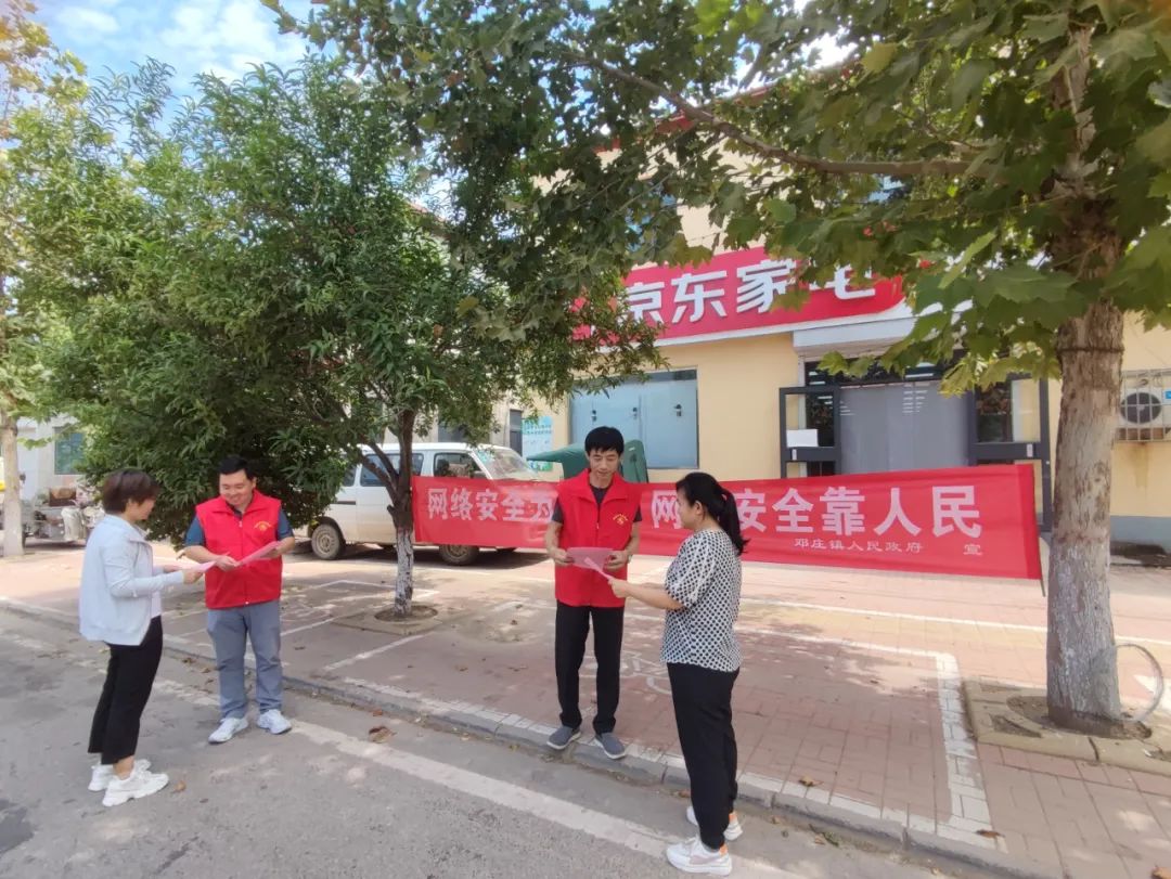 邓庄镇“一中心一站”在全镇范围内开展网安周宣传活动,宣传普及网络安全知识。“一中心一站”工作人员上街入户,向辖区居民和沿街商户发放网络安全知识宣传资料,以通俗易懂的语言向广大群众普及如何预防网络诈骗、加强手机信息保护等知识,引导群众自觉抵制不良信息,不贪图小利,辨别网络陷阱,切实提高广大人民群众网络安全意识和防护技能,营造健康文明的网络环境。宣传活动共发放各类宣传材料120余份,接受群众各类问题咨询50余人次。