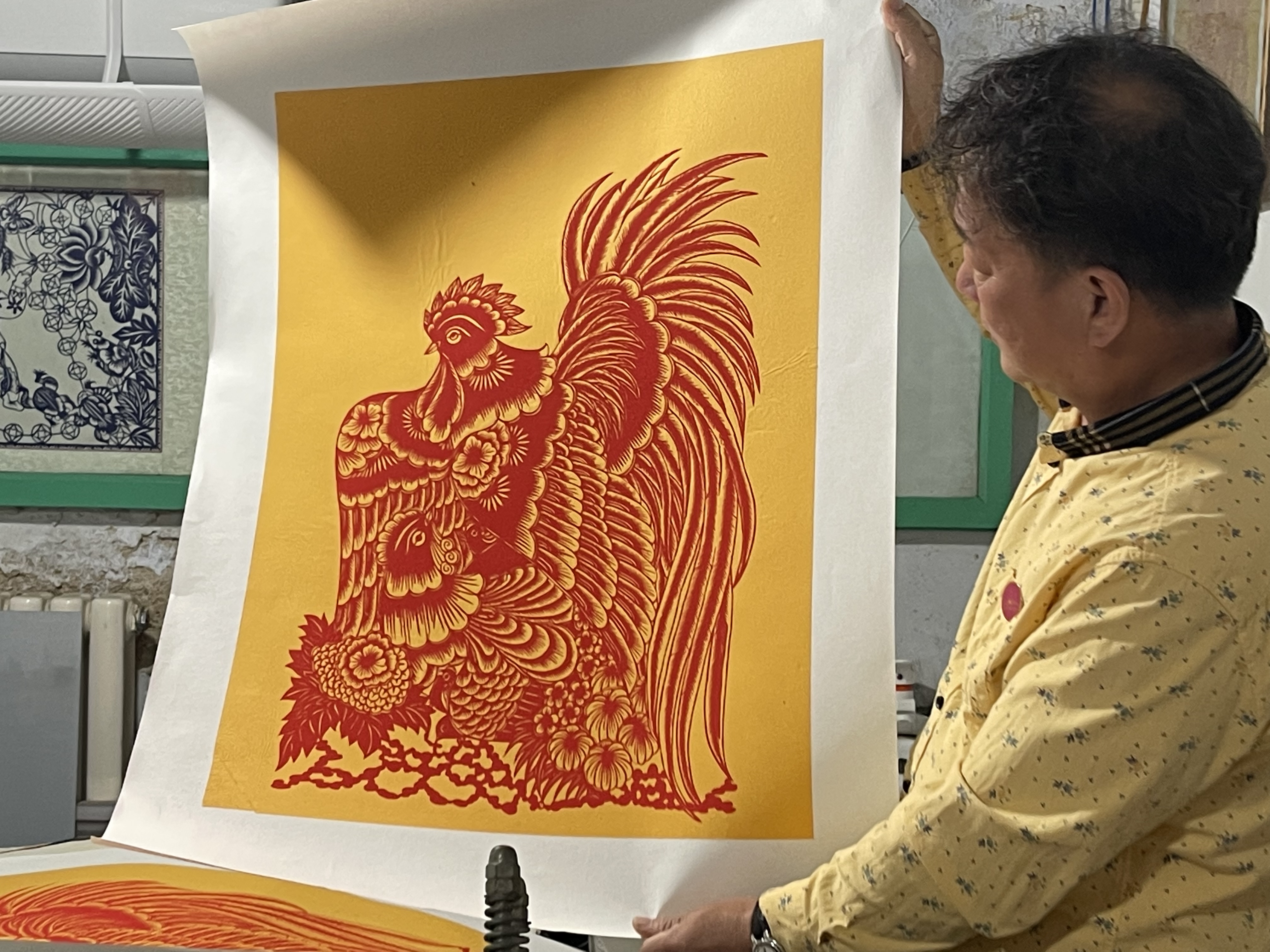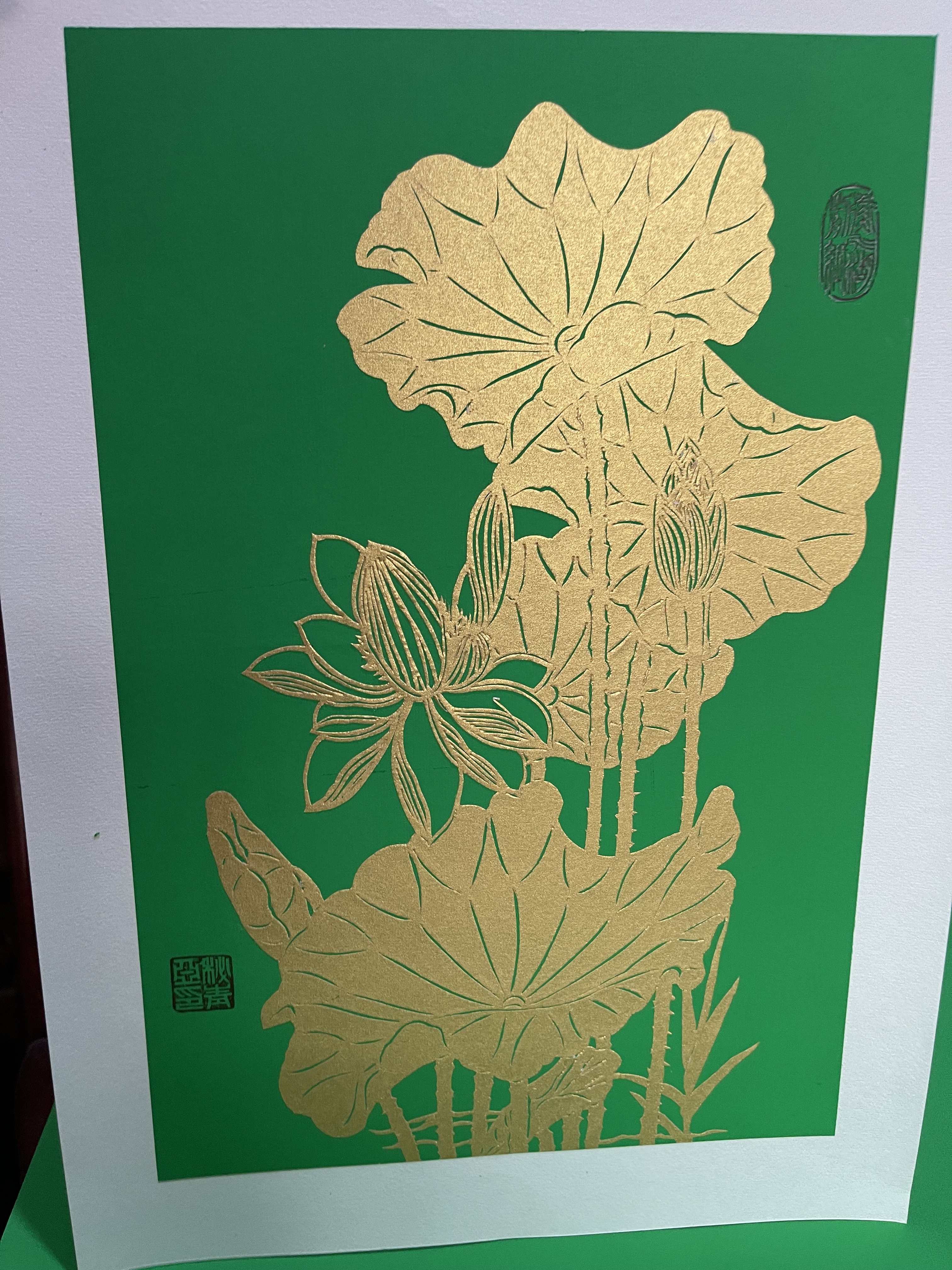 在秘青亚的创作木板上,挂着一副未完成的荷花作品,鲜绿色的底,金色的荷花、荷叶,两种艳丽的色彩在台灯下闪着光,“这里我还想再多加上几个线条,还有这里,荷叶线条也要再加上一些,”秘青亚说,他创作剪纸与别人不同,会根据不同的心境,不断地改进创作思路和修改线条。大胆的色彩运用,强烈的构图加上精益求精的创作态度,让秘青亚的衡水湖题材剪纸作品深受人们的喜爱。