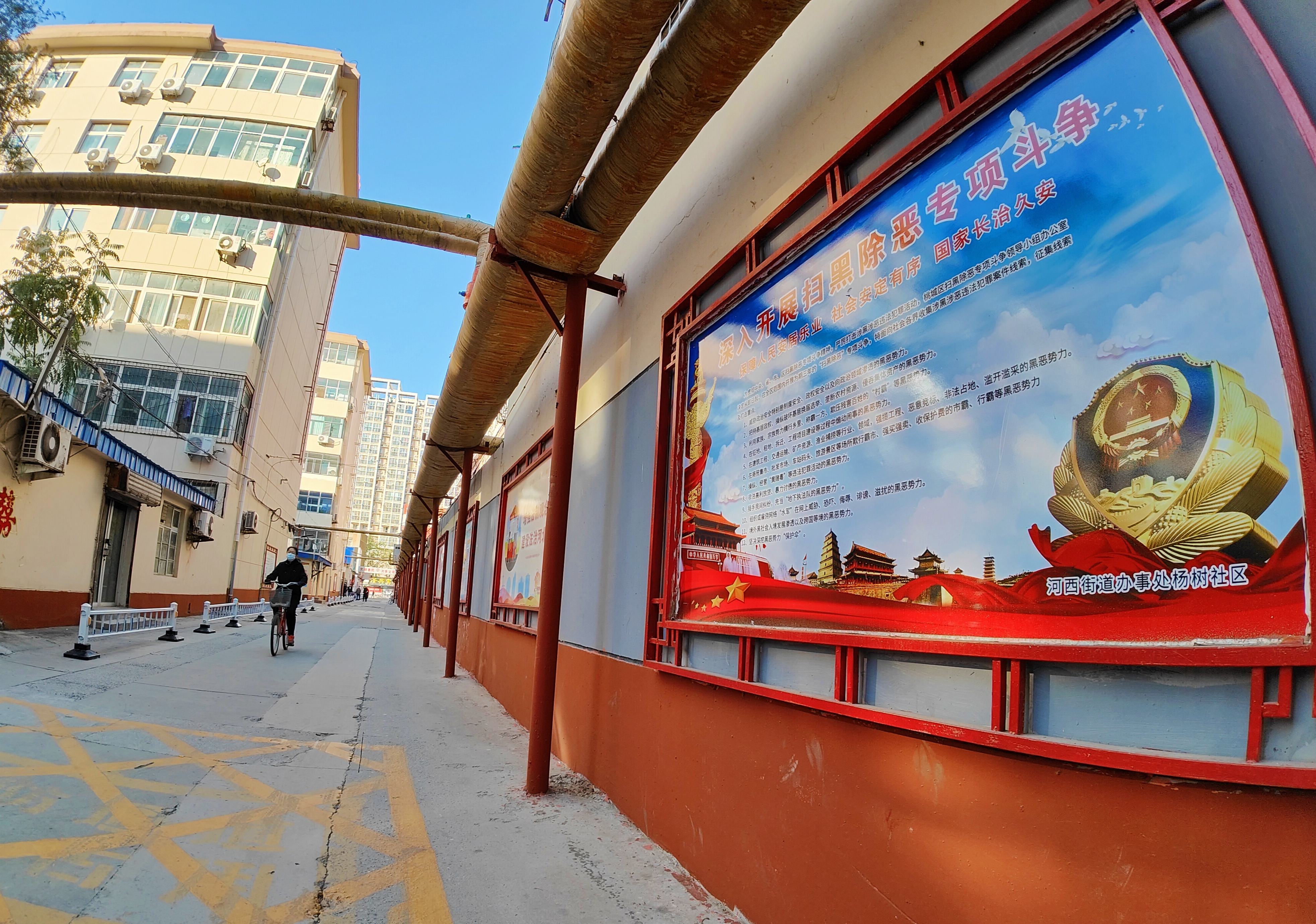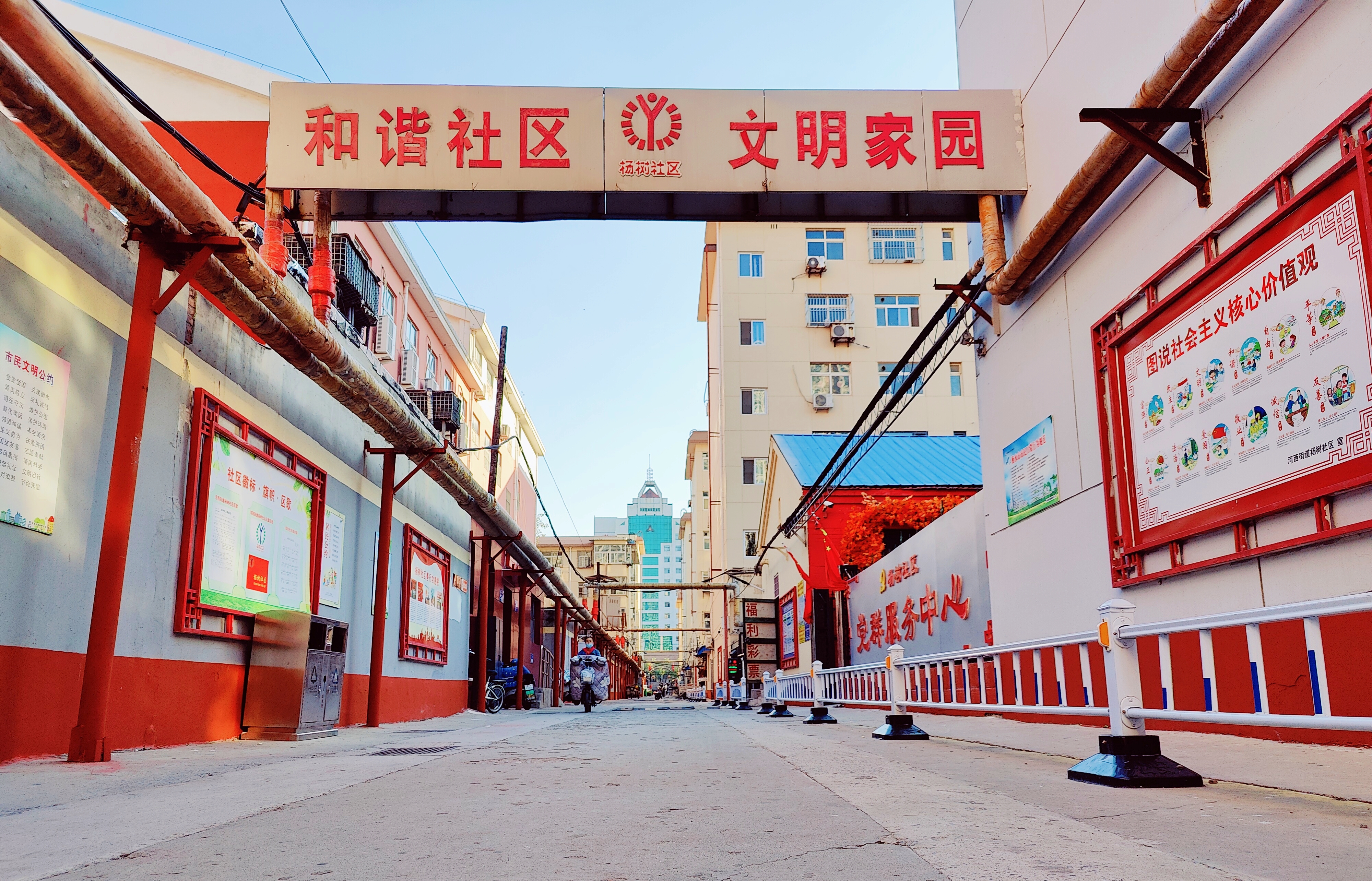 近年来,河西街道持续打造杨树胡同“创城文化巷”,本着发挥胡同最大优势、创造最大利用价值、扮靓城市环境的原则,在胡同里安装制作了40米长的崇德文化展板,集普法、德育、国防、安全、崇德尚礼、文明道德、邻里和谐等于一体,设计理念新颖别致,图文并茂,通俗易懂,有很强的教育性、观赏性和实用性。文化展板不仅浓厚了胡同文化氛围,传递了正能量,也激发了广大市民建设美好精神家园的热情。