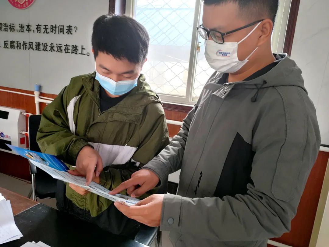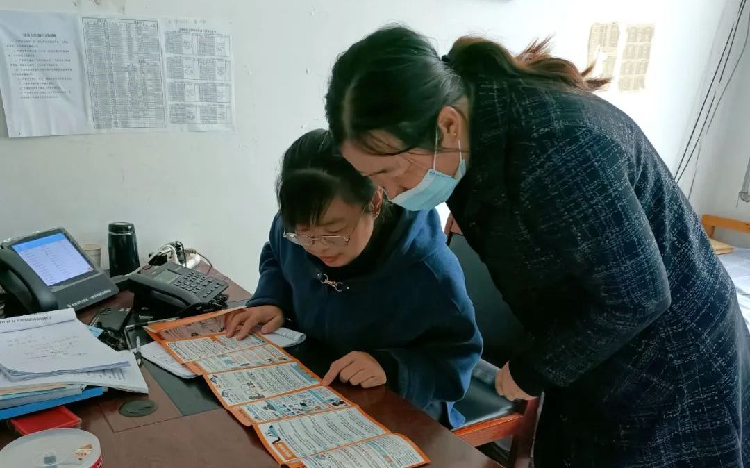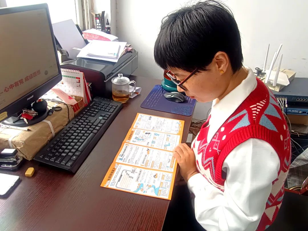 △漫河镇网络文明志愿者讲解网络举报和辟谣宣传资料。