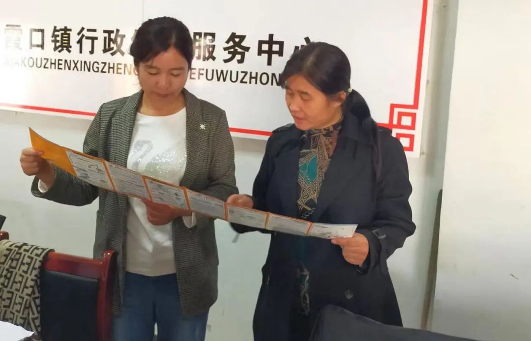 △霞口镇网络文明志愿者讲解网络举报和辟谣宣传册。