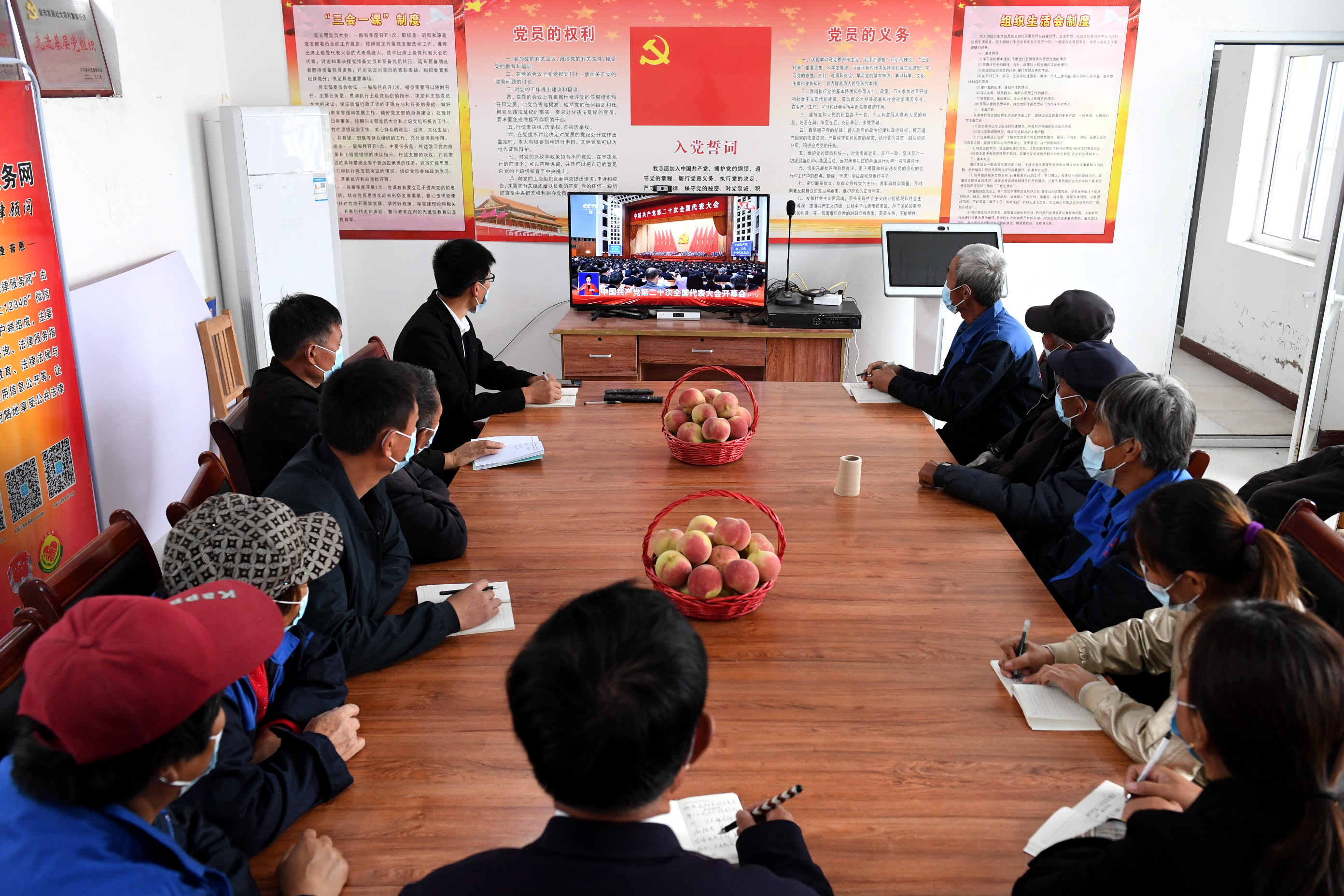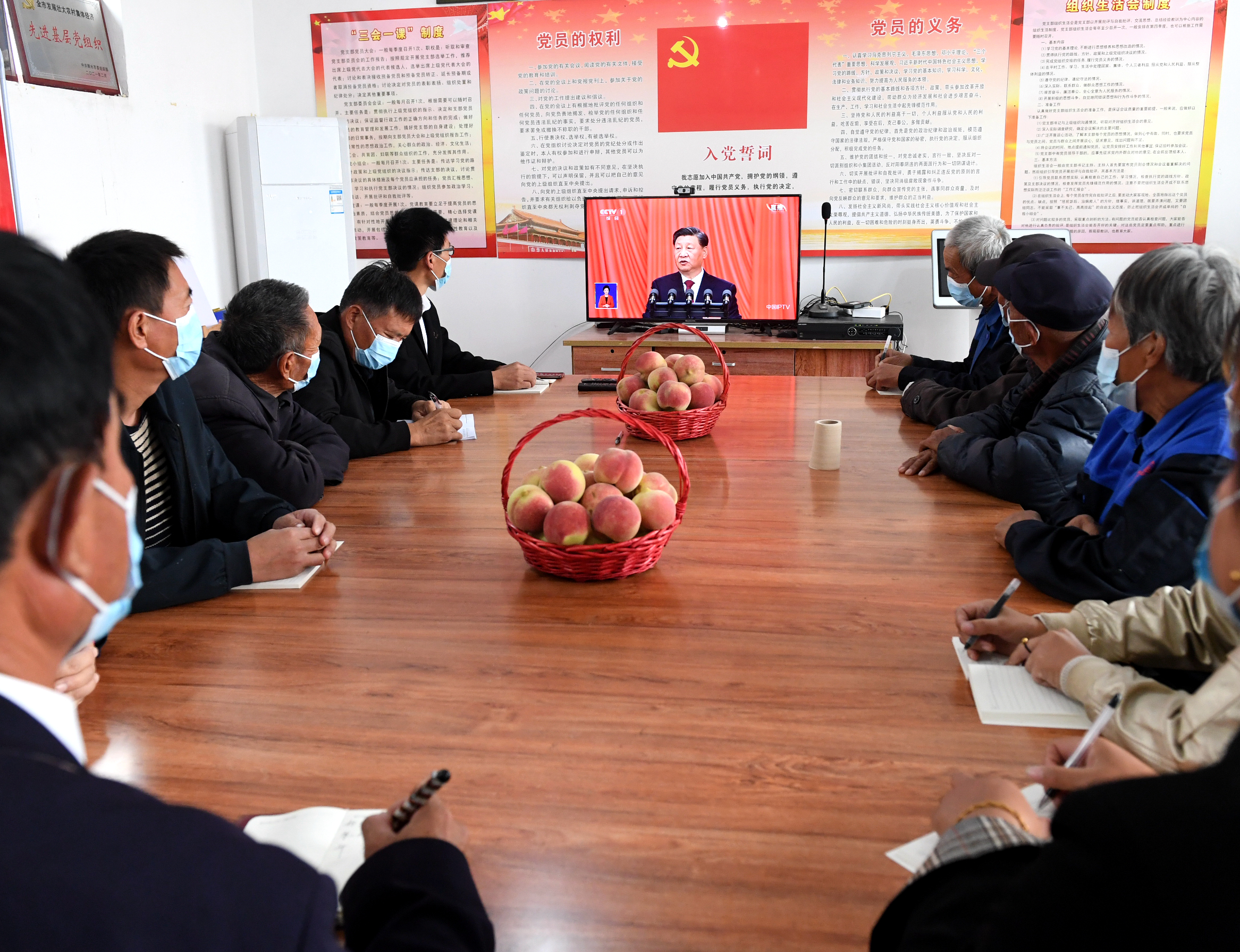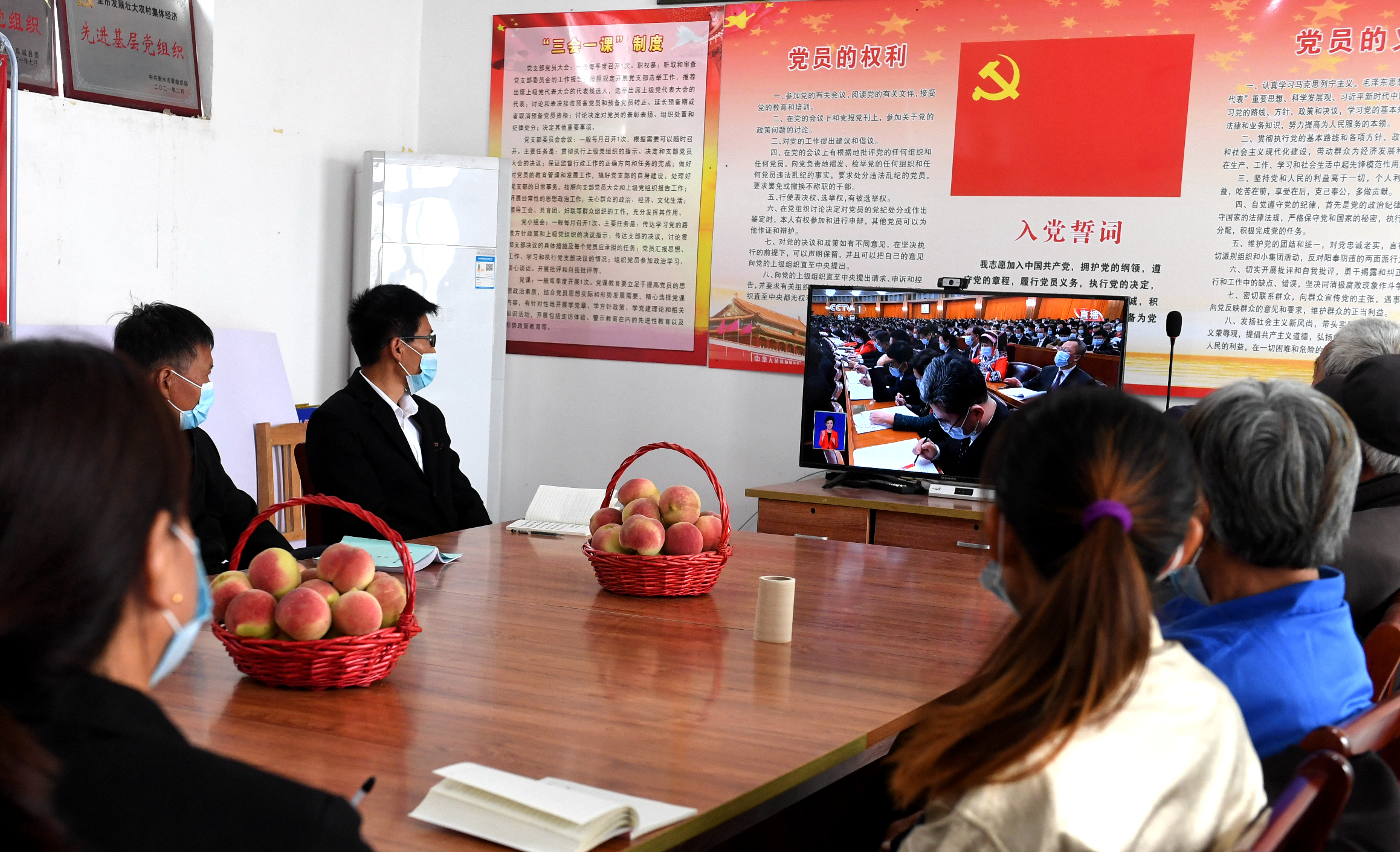 16日上午,在阜城县崔家庙镇张家桥村村委会会议室内,该村党支部书记张勇组织党员干部、村民们共同收看党的二十大开幕直播,感受团结、奋进的时代脉动,大家表示蓝图已绘就,未来将齐头共奋进。