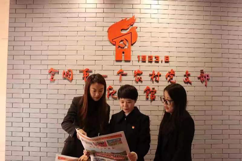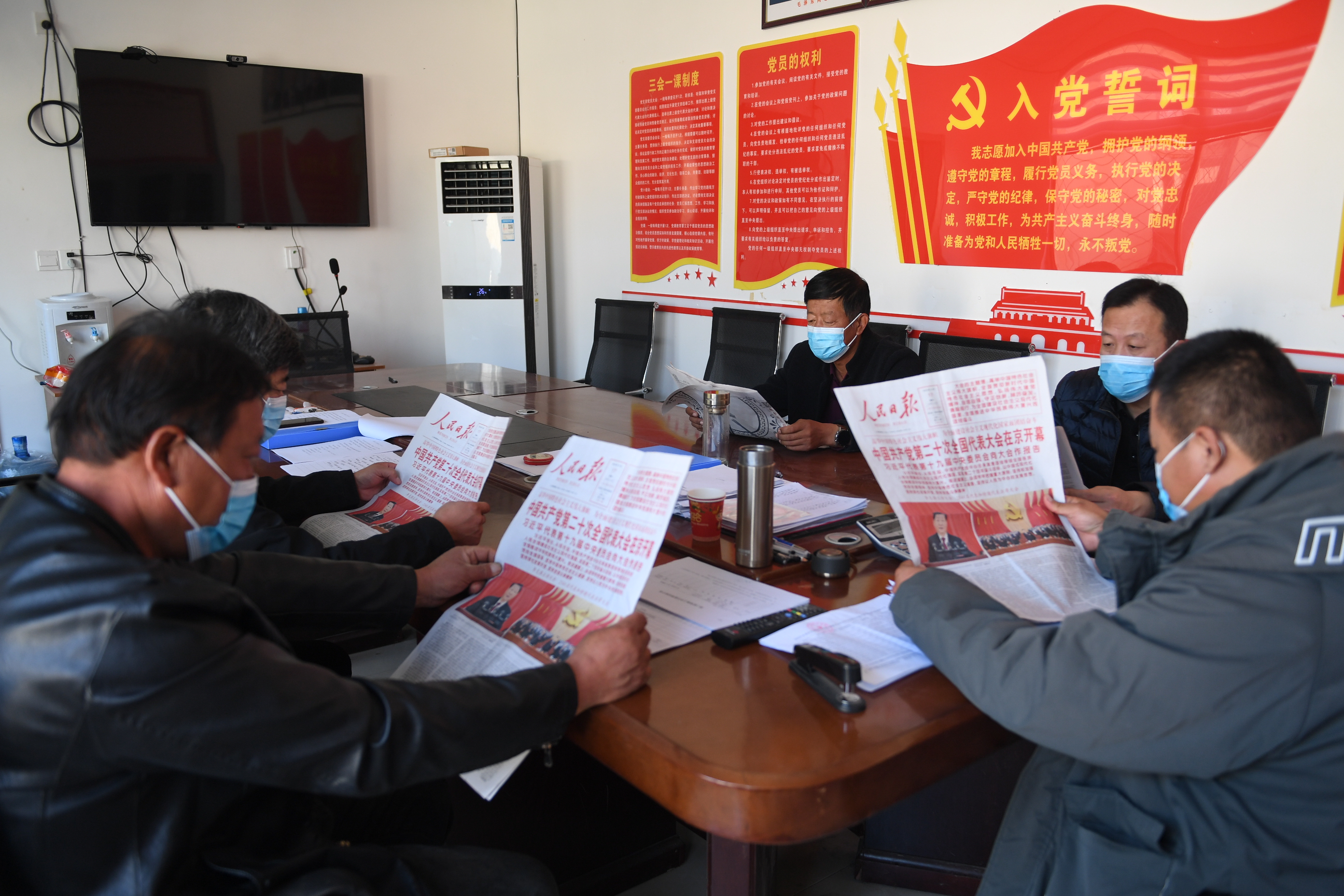 安平县台城村全国第一个农村党支部工作人员学习党的二十大报告。