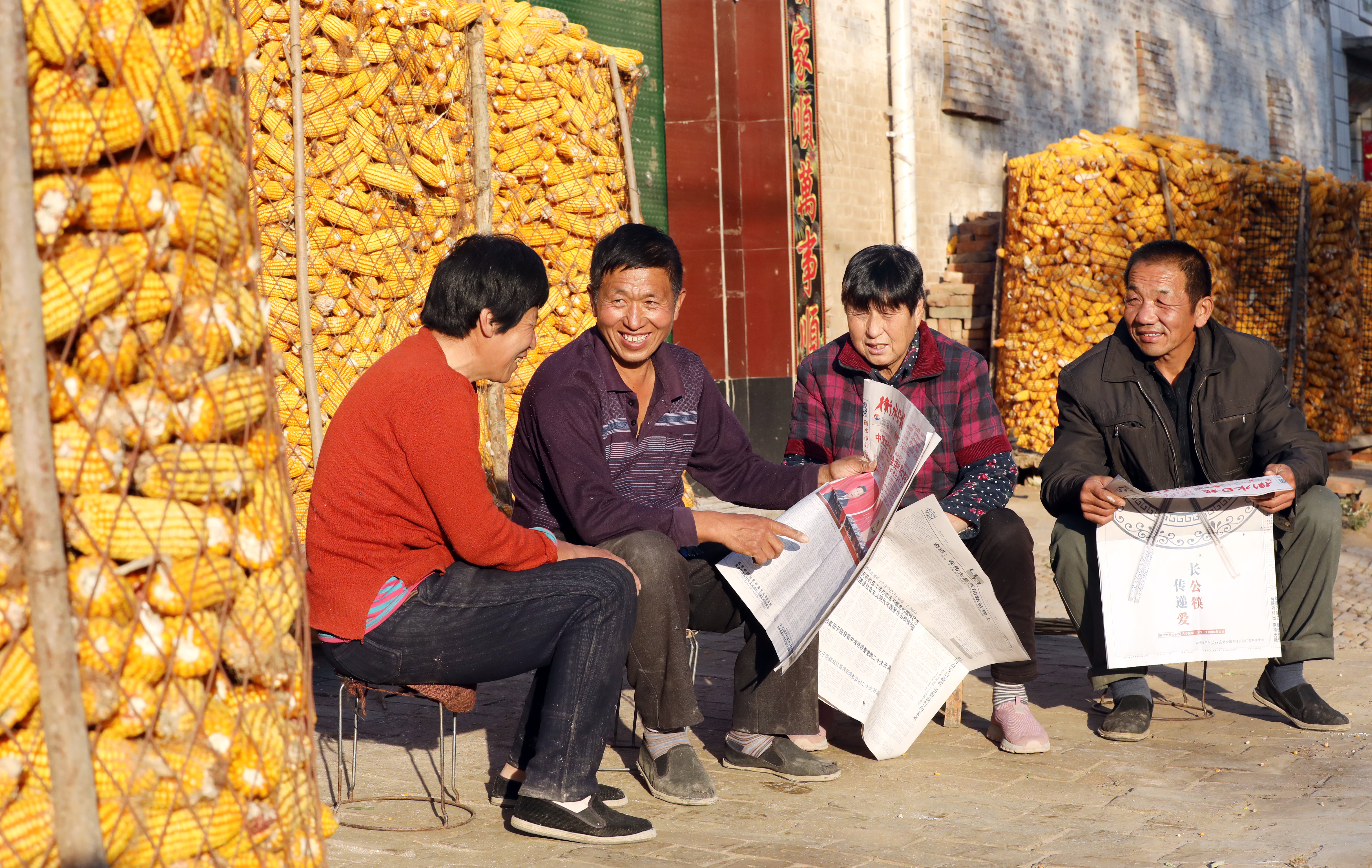 武邑县南云齐村村民利用农闲时间认真学习党的二十大报告。