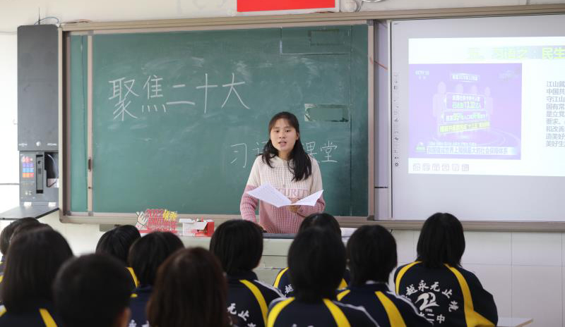衡水市第二中学师生学习党的二十大报告。