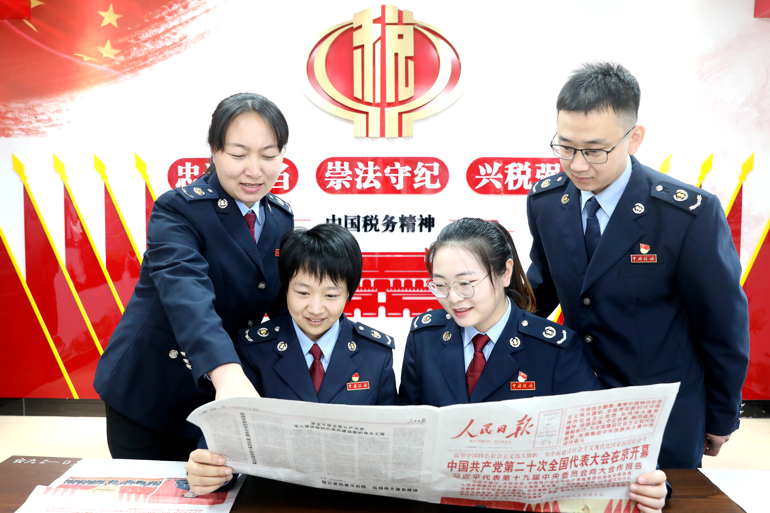 桃城区税务局工作人员集中学习党的二十大报告。
