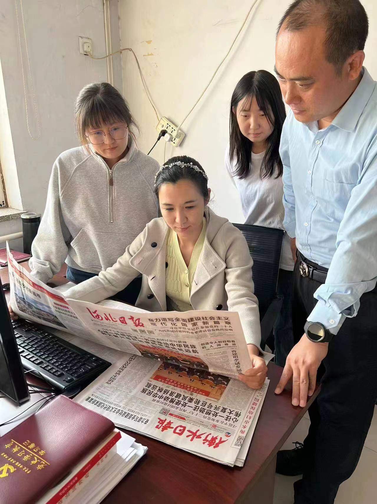 安平县融媒体中心驻程油子乡北杨庄村乡村振兴工作队带领村党员干部集体学习党的二十大报告。