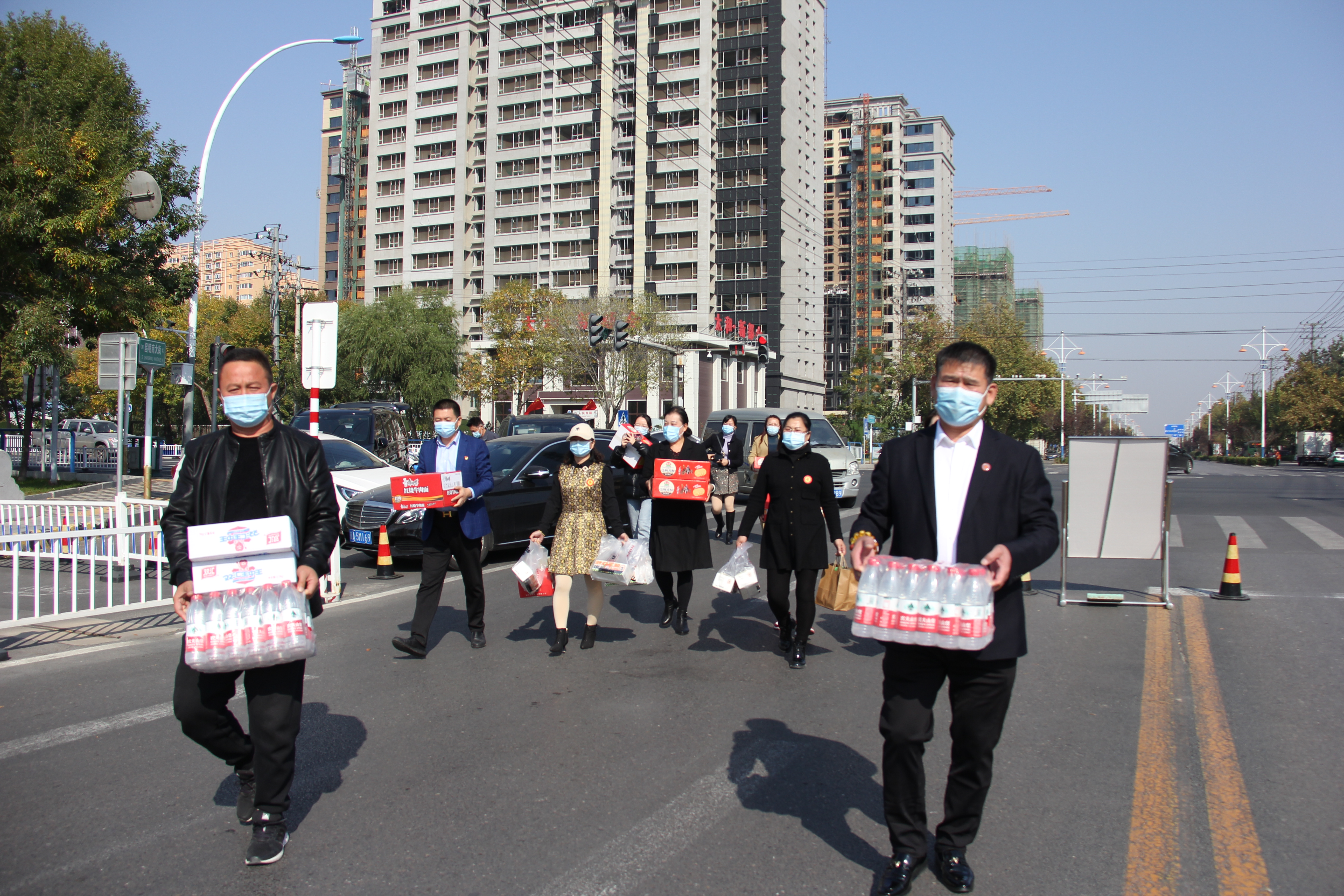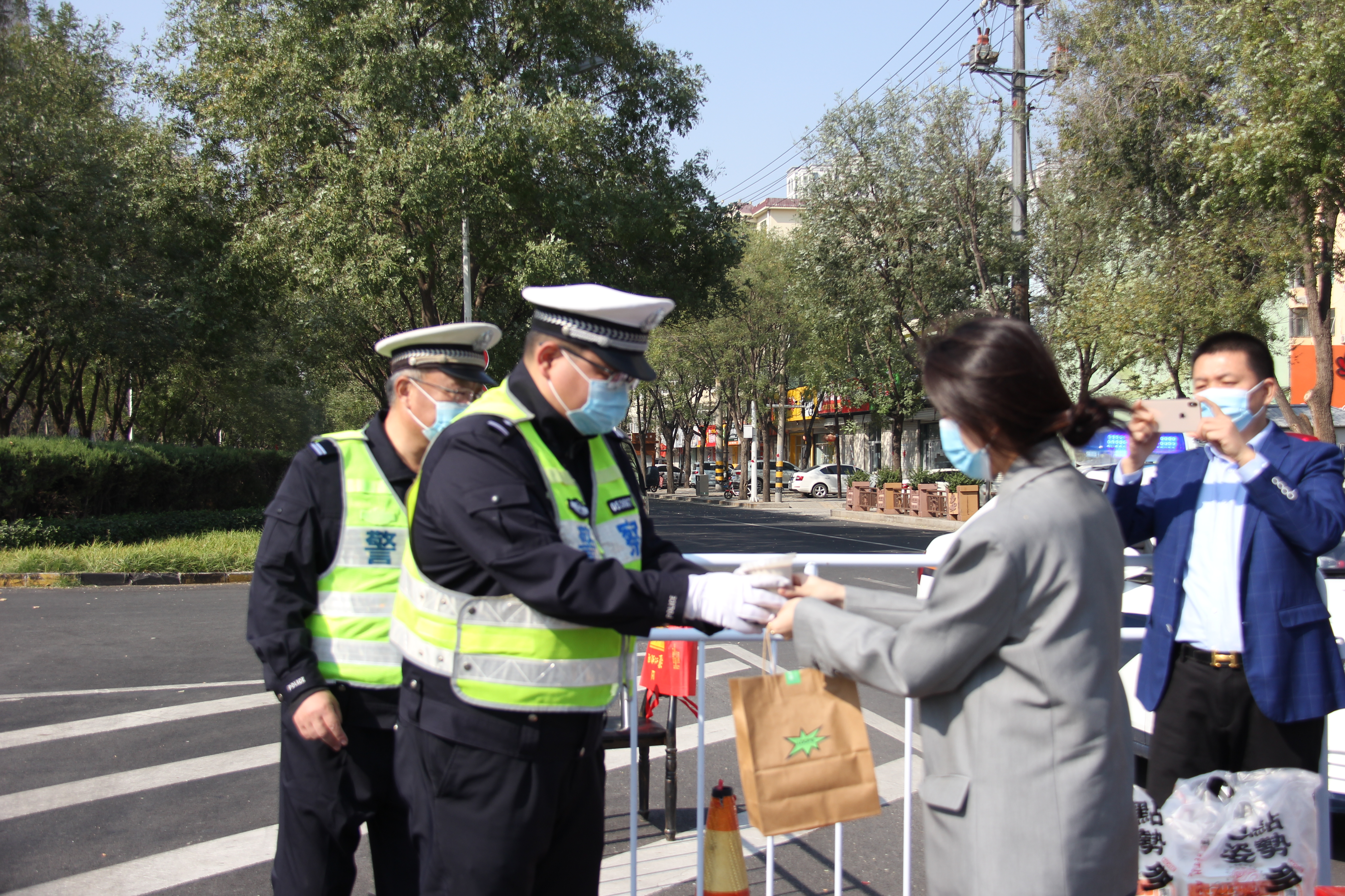 “疫情面前,他们倾情守护,实在太辛苦了。”看着马美娜等人工作的身影,衡水江苏商会会长毛明安等人由衷地表示敬佩,“在这个特殊时期,我们也想奉献一份微薄之力,为一线的交警们送去关爱。” 与此同时,衡水家风家教文化馆馆长李丽芳和工作人员们也表达了同样的想法,大家积极筹措方便面、矿泉水、糕点、热饮咖啡等物资,向战斗在疫情防控一线的工作人员表达敬意。众人随后又来到胜利路与前进大街交叉口,为同样在路口坚守的交警们送上暖心物资,表示诚挚的慰问以及与交警同心共抗疫情的决心。