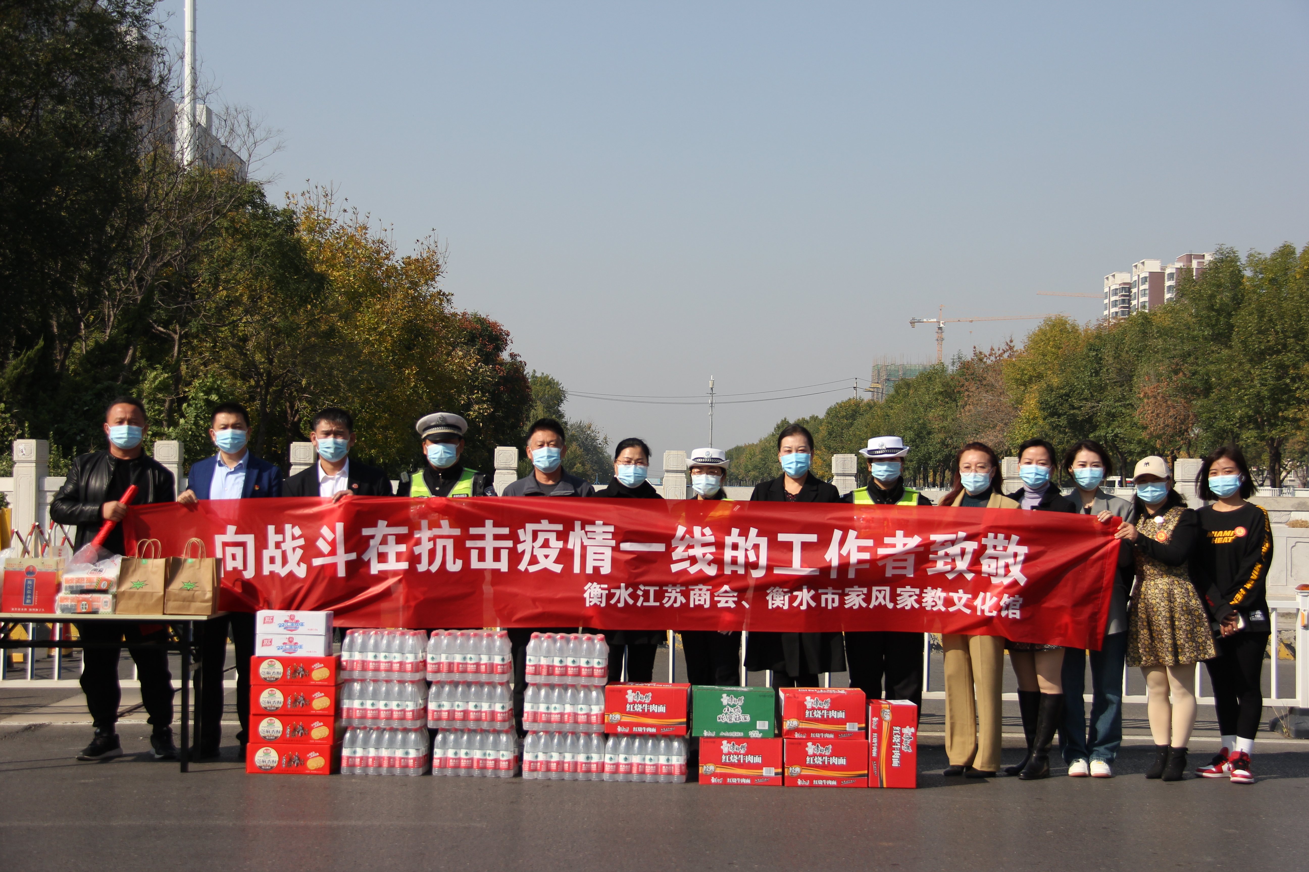 10月19日上午,衡水江苏商会的爱心企业家和衡水家风家教文化馆的工作人员在市妇联和市工商联的有序组织下,为疫情防控一线的交警们送去暖心物资,表达对交警的关心和慰问,诠释守望相助的力量。