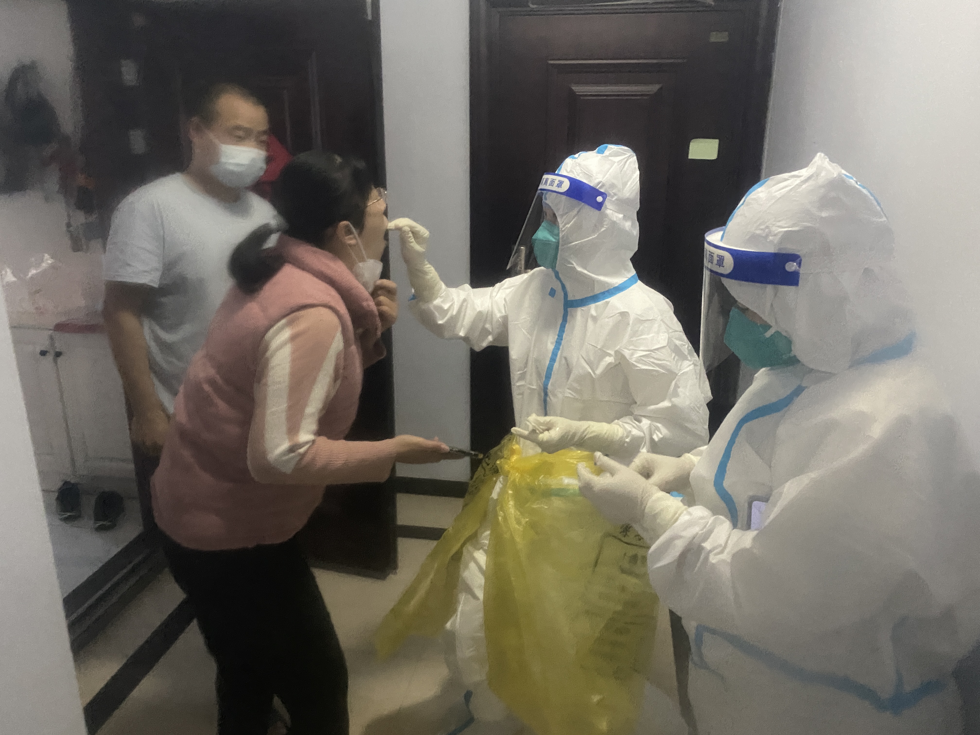 “几乎一天没合眼。” 陈子鹰说,15日凌晨,他们完成了协助转运第二批人员工作,同时接到一个暖心消息:同事田阔主动申请支援。“扩充”的003网格小组信心更足、速度更快,其成员全部分配入19个入户核酸检测小组中,承担信息录入、样本转运、样本送检,数据统计等各项工作,并对物资摆放区域、人员集中区域进行了消杀。