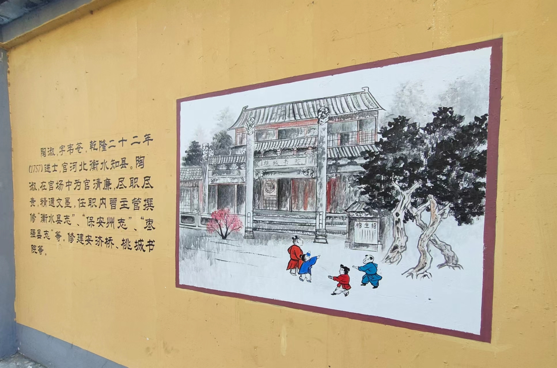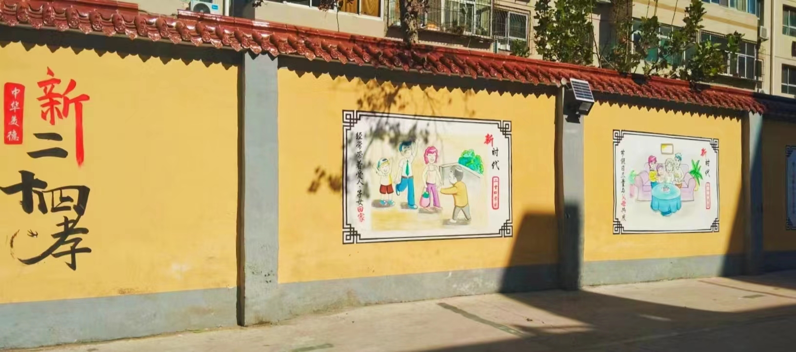 记者走在福宁里胡同内,只见胡同两侧的彩绘文化墙格外显眼,让这里散发出浓浓的文化气息,来往的居民和学生经过此处纷纷驻足观看。该墙约3米高,整体以黄色为底色,北侧墙面绘有“新时代二十四孝图”,南侧墙面则以衡水著名历史人物和事件为主,图文并茂地讲述了孔颖达、董仲舒、孙敬等人的经典故事,还有关于安济桥、桃城区闸文化展览馆、孙敬学堂、桃城书院和衡水县志的彩绘,让大家更清晰地了解衡水的历史文化。