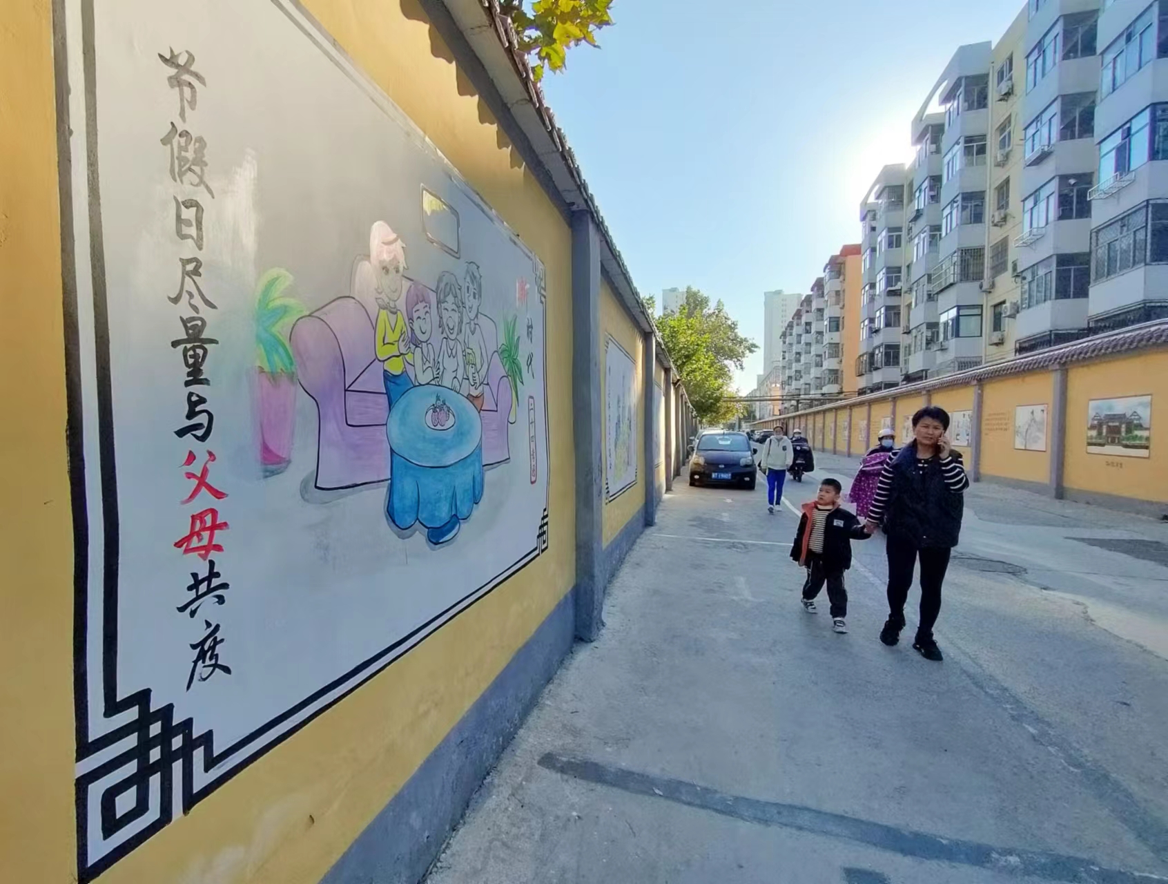 “原本单调的旧围墙画上彩绘,变成‘会讲故事’的文化墙,每天从胡同经过,都会多看几眼,心情也变得好了。”10月24日,家住衡水市桃城区福宁里胡同的居民陈女士谈起创城给胡同带来的变化,赞叹不已。