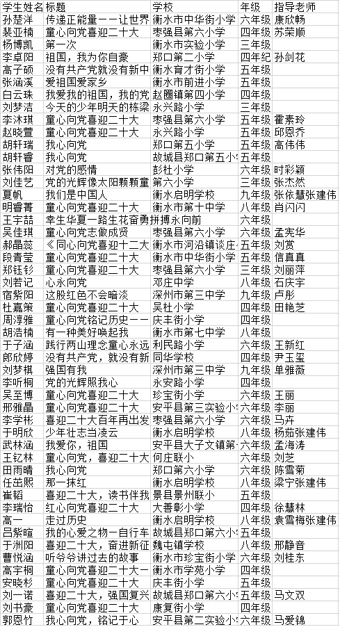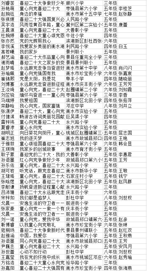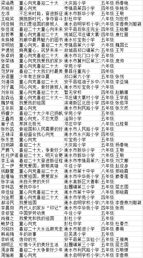 “南昊杯”衡水市中小学生作文比赛晋级复赛、决赛名单(201):