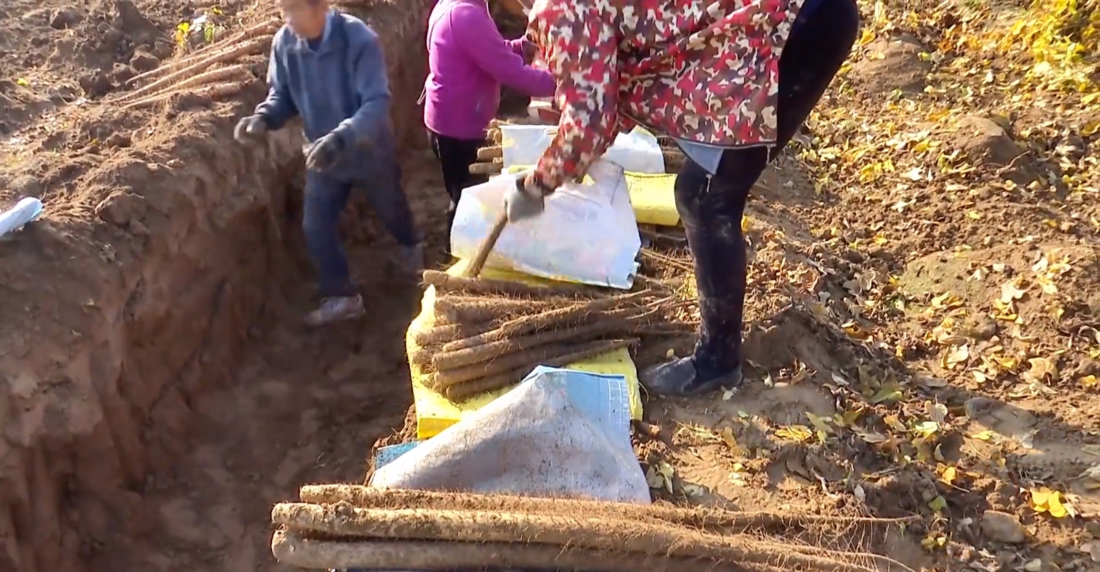 农民在田间采收麻山药。薛腾飞 摄