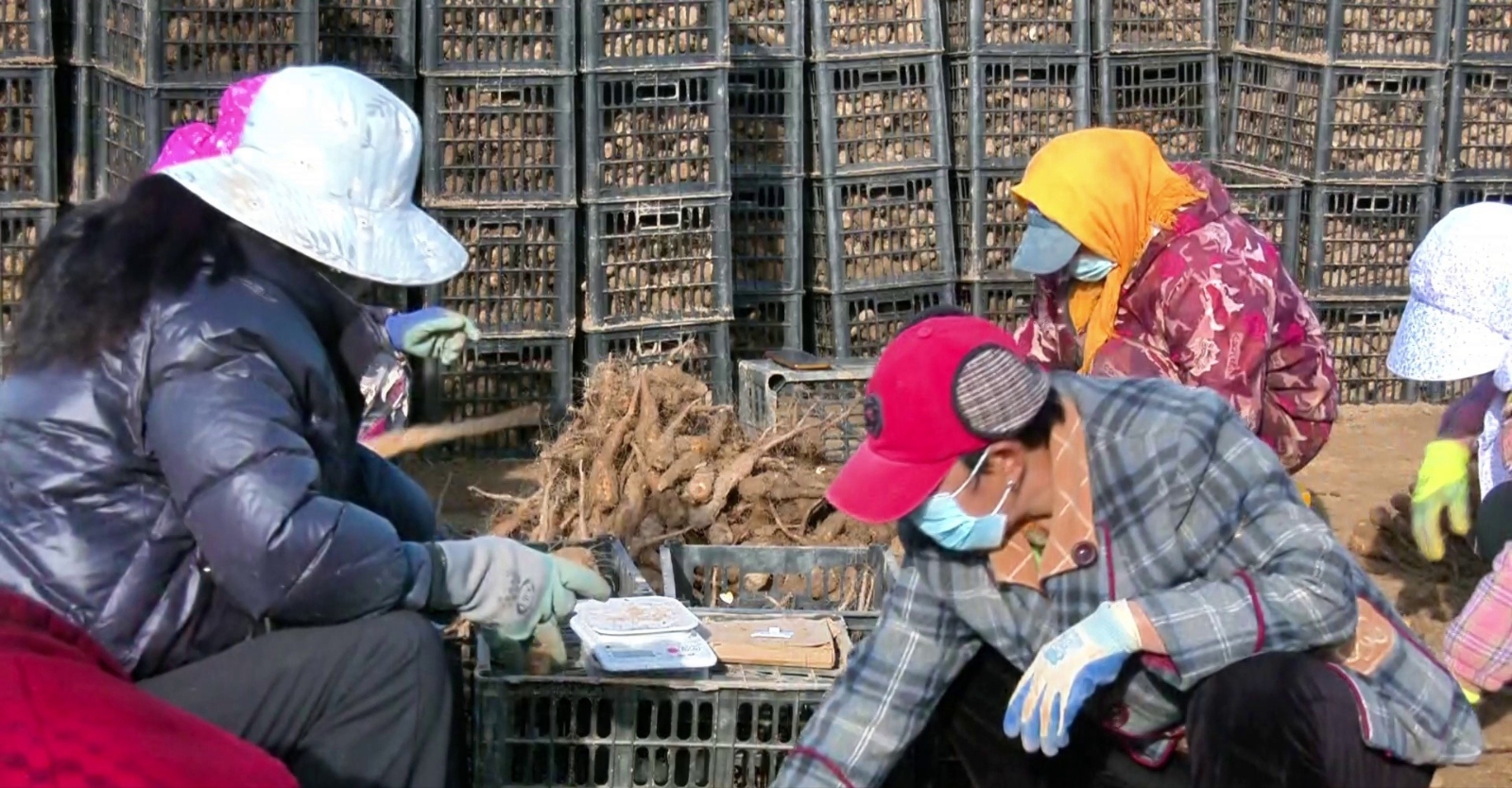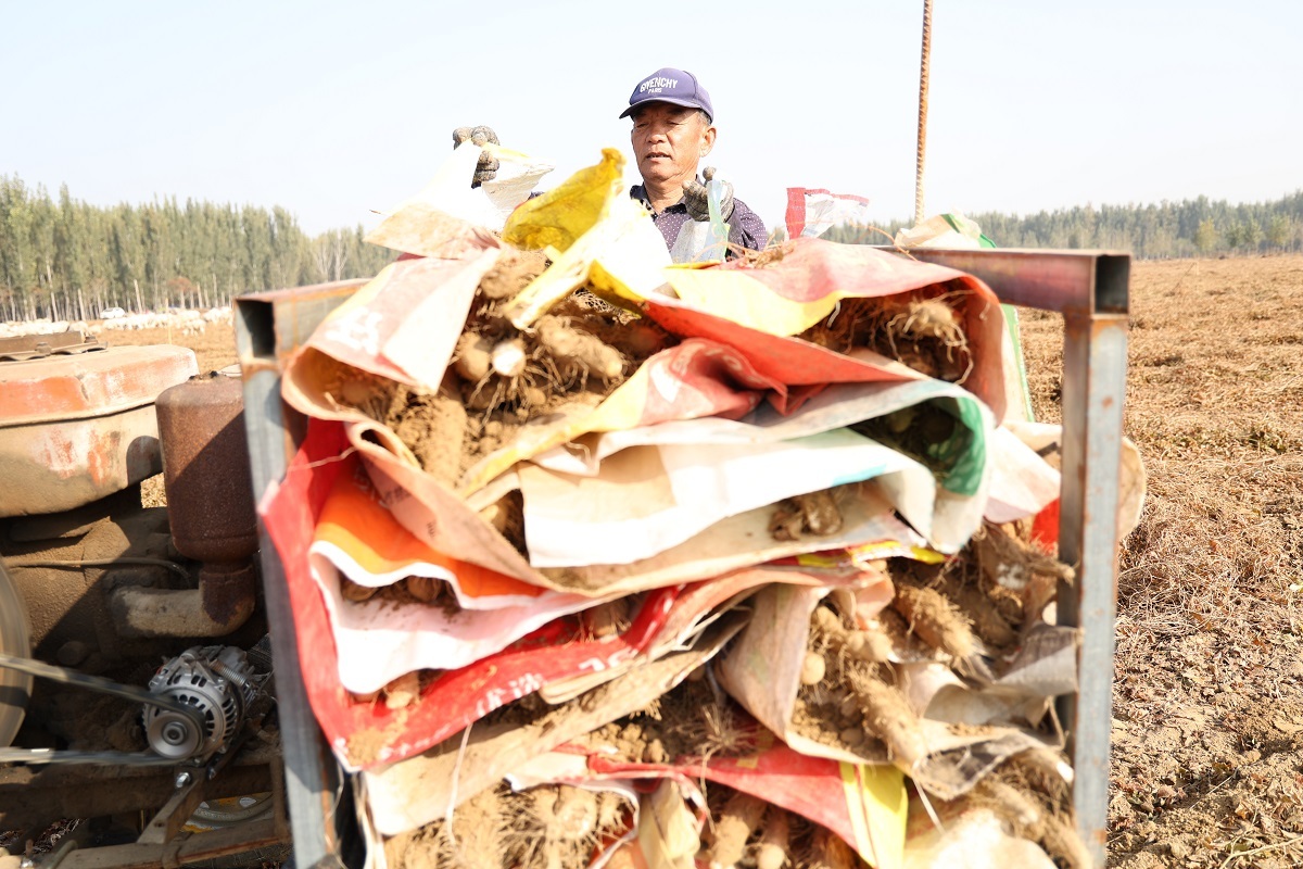 农民将麻山药搬上车。薛腾飞 摄
