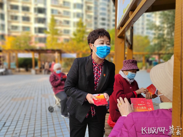 周慧霞向社区党员群众传达党的二十大精神。长城网·冀云客户端记者 郭政 摄