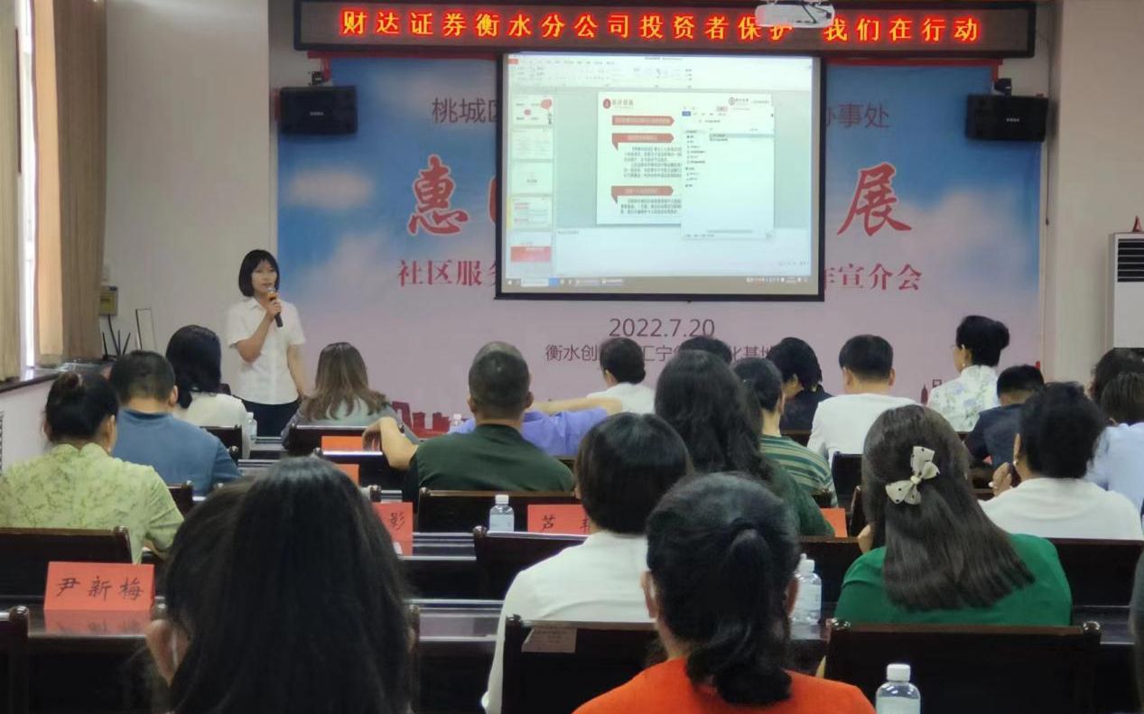 2022年7月20日,财达证券衡水分公司与女企业家协会和河西街道办事处联合举办“惠民生 促发展”合作宣介会。