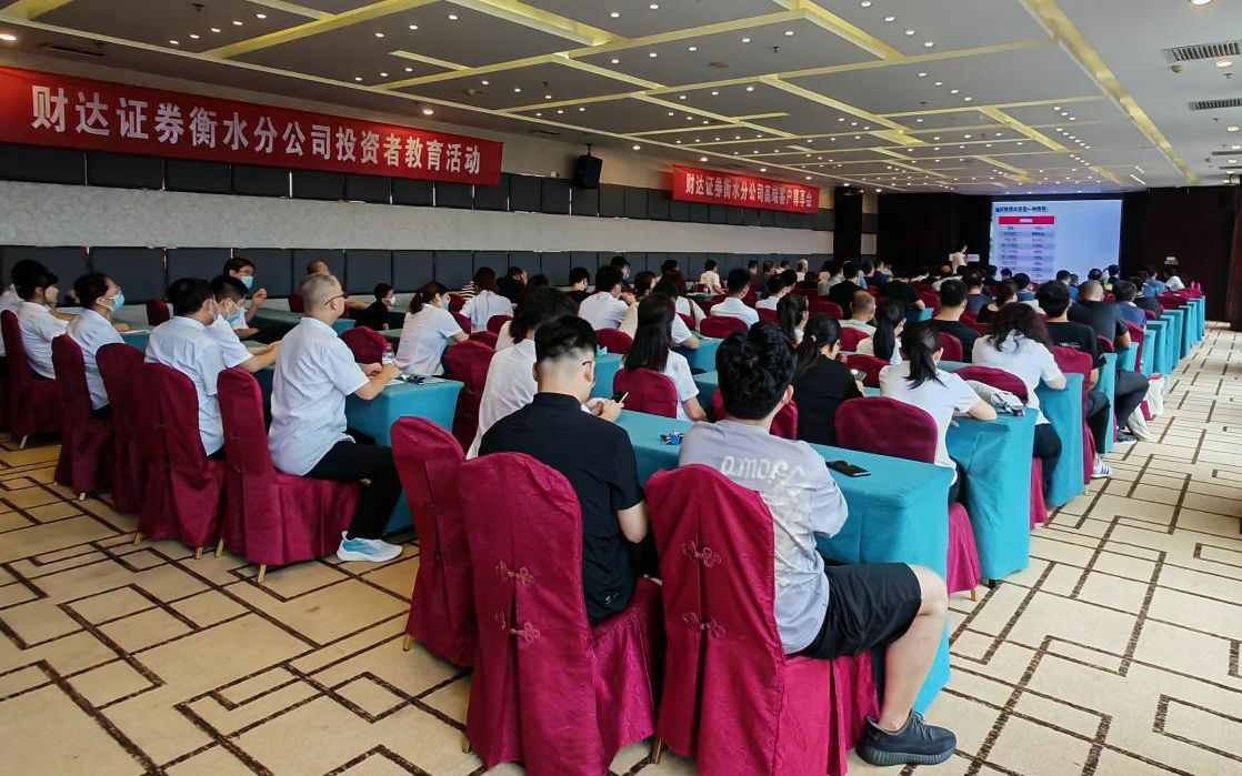 2022年8月14日,财达证券衡水分公司在昆仑大酒店会议室开展高端客户尊享会暨投资者教育活动。
