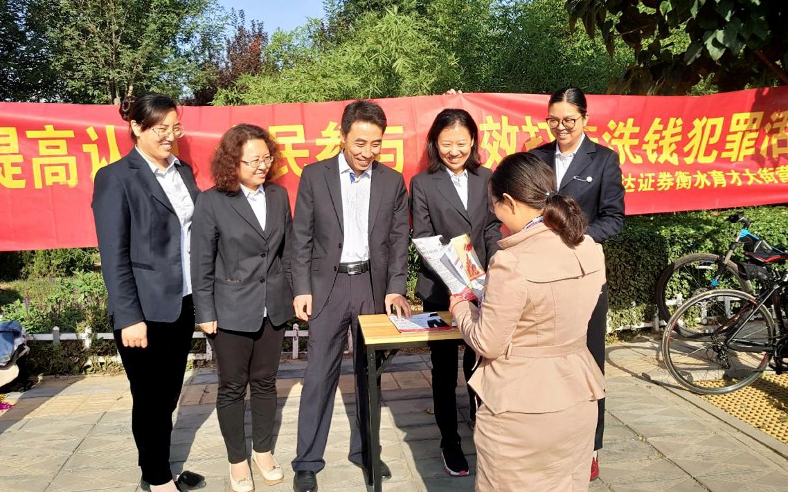 2019年10月,衡水育才大街营业部开展“提高认识 全民参与 有效打击洗钱犯罪”活动