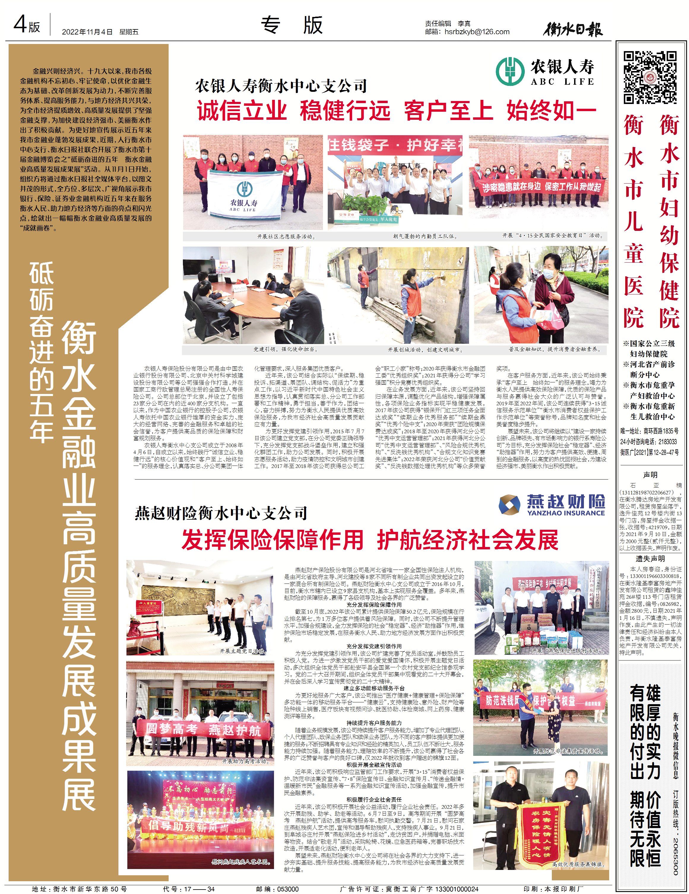 2022年11月4日,《衡水日报》A4版刊登报道了该公司成绩、风采。