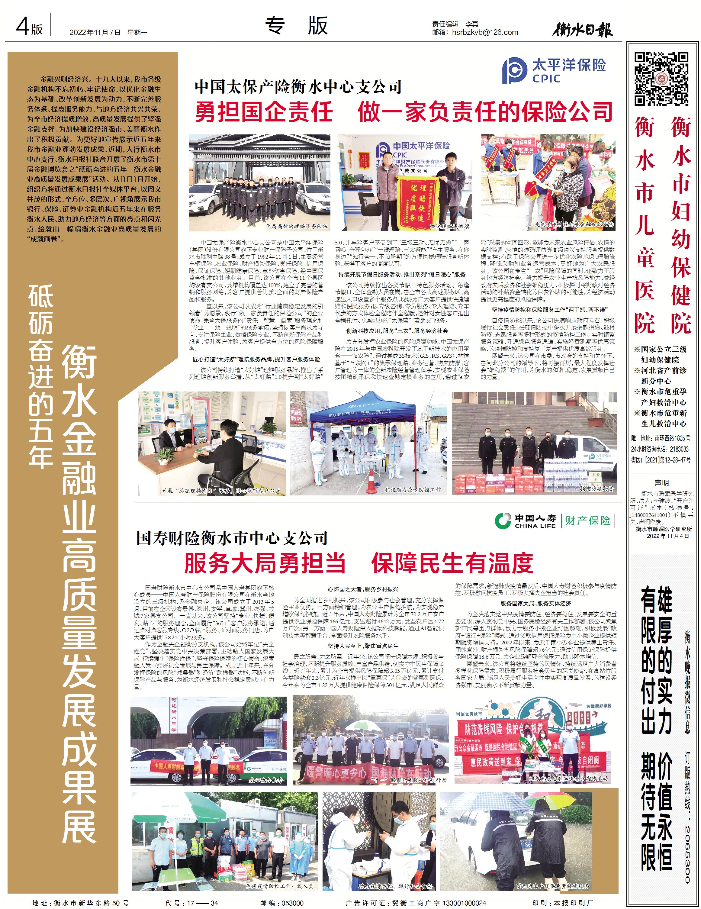 2022年11月7日,《衡水日报》4版刊登报道展示了该公司成绩、风采。