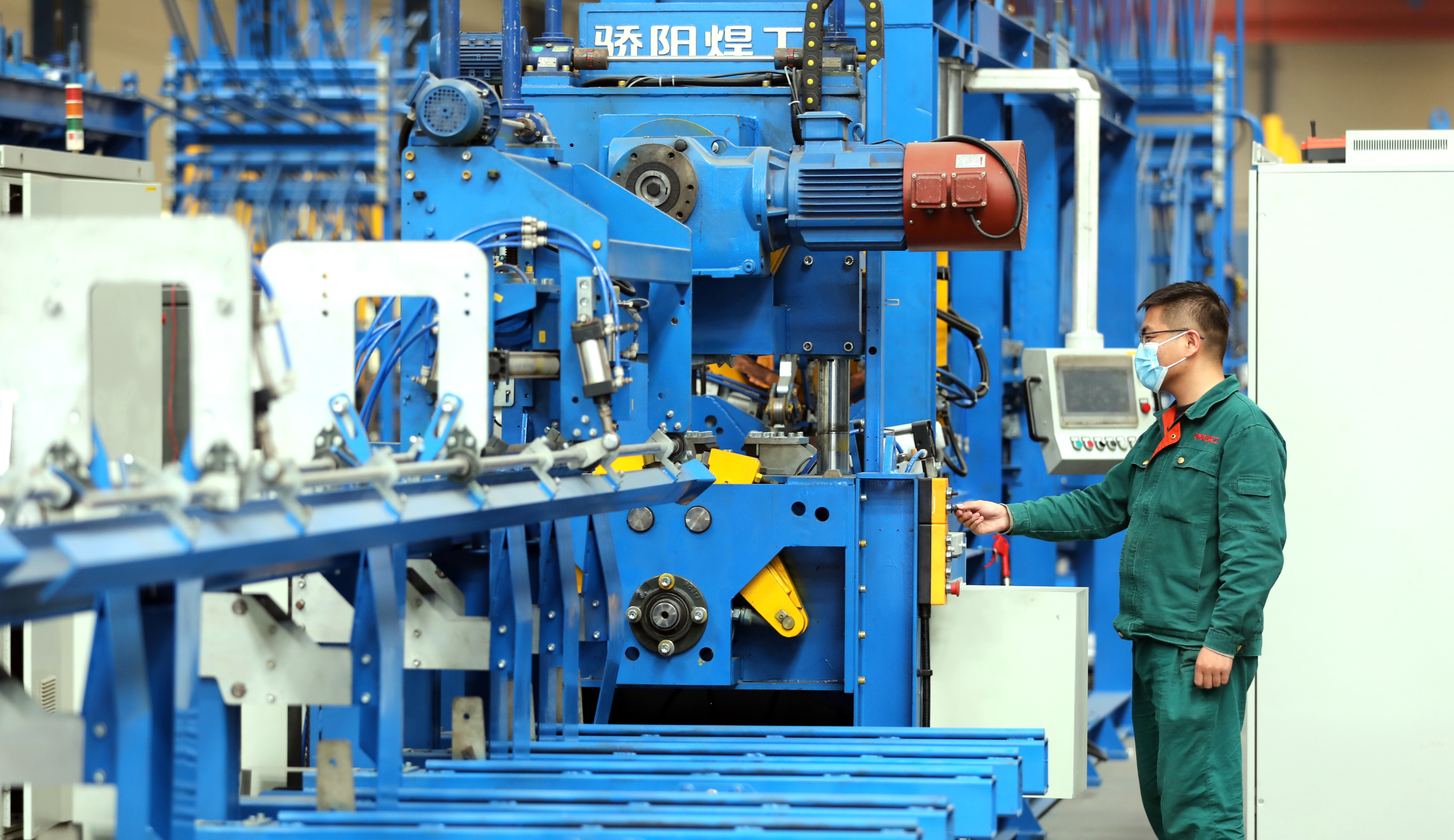 河北骄阳焊工有限公司是一家集研发、生产、销售于一体的焊网设备先进企业,目前公司共申请国家专利150项,获得授权的专利126项。图为河北骄阳焊工有限公司工作人员对出口马来西亚的钢筋焊接设备进行调试。