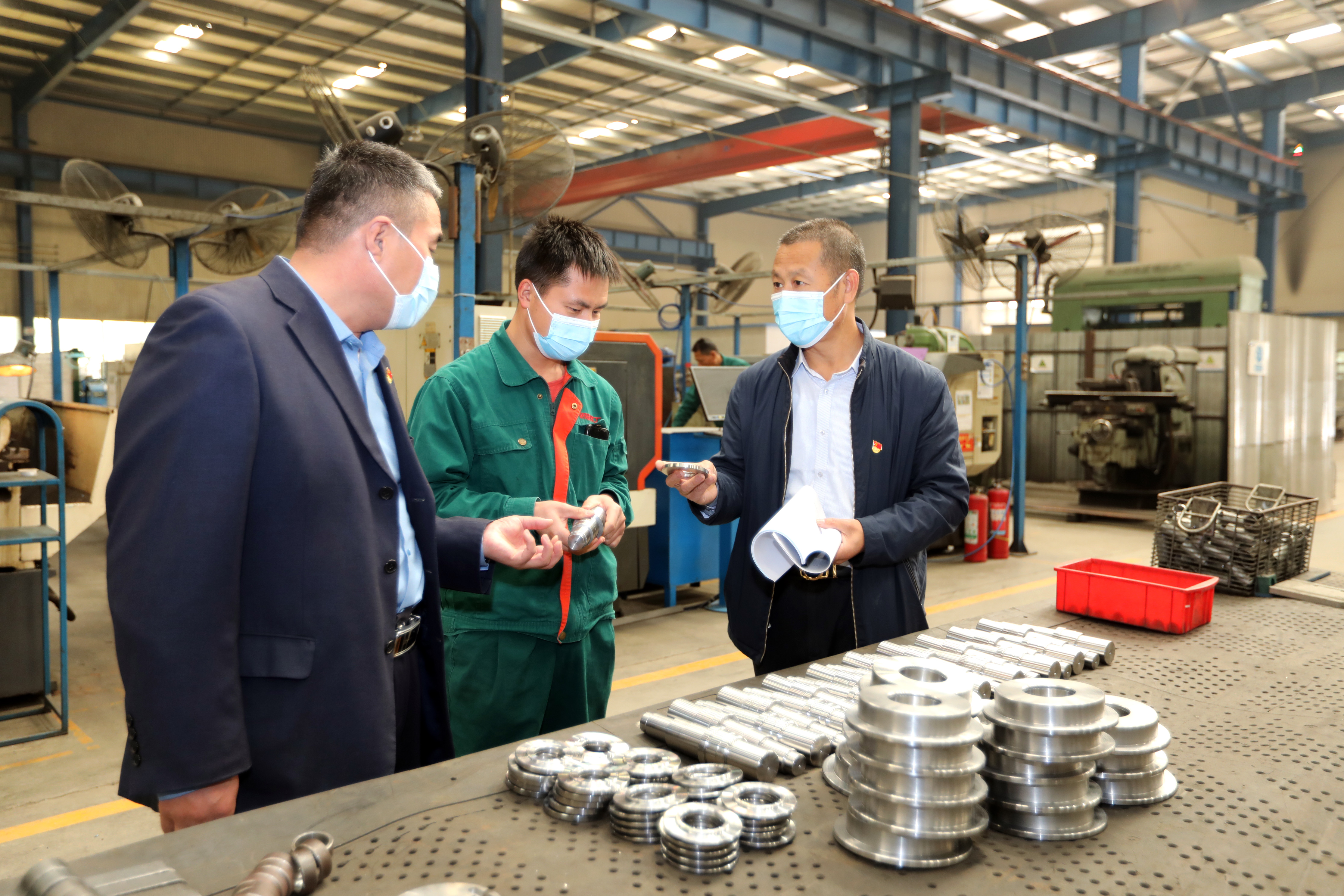 今年以来,安平县出台15条惠企政策对丝网企业在招商引资、设备引进、外贸出口、科技创新等方面给予资金支持奖励,进一步促进丝网产业集群转型升级。图为安平高新区工作人员到企业宣传政策。