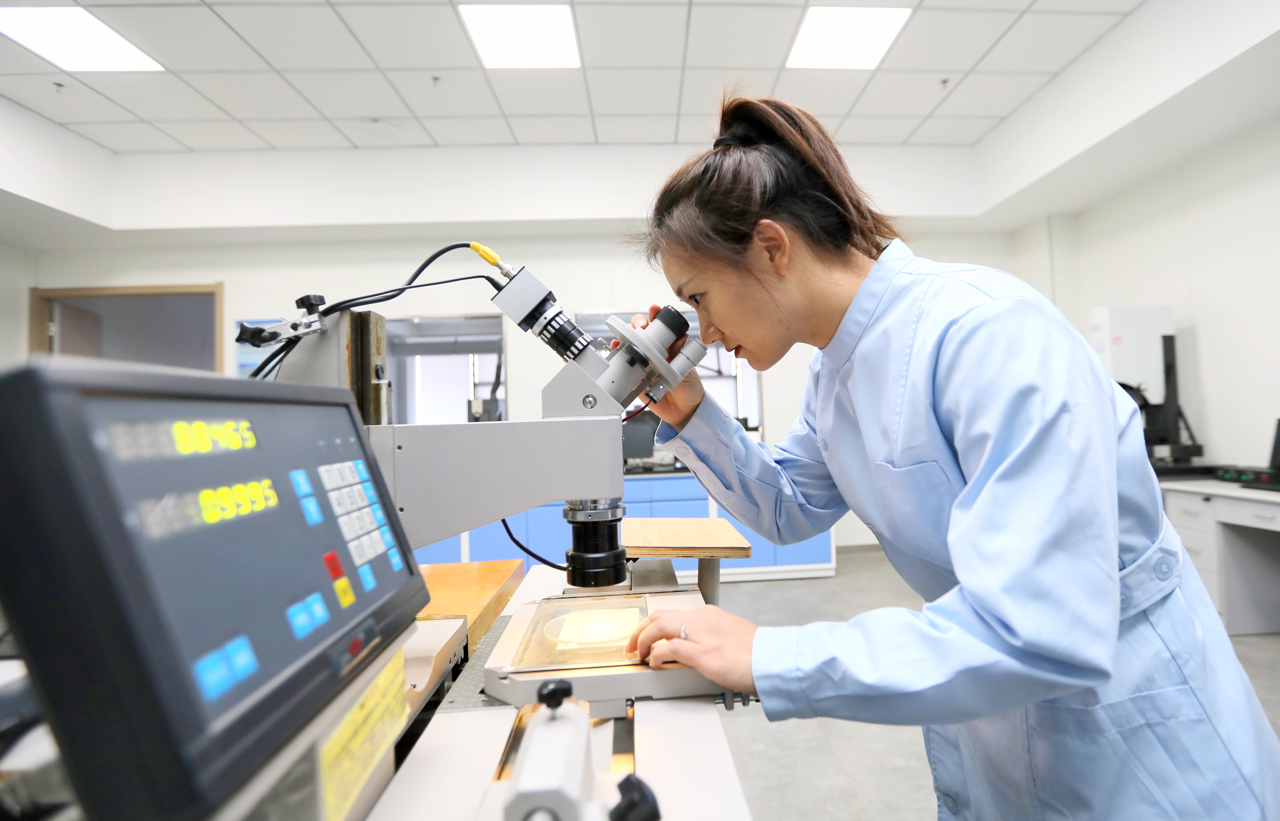 河北省丝网产品质量监督检验中心是国内唯一一家专业从事丝网产品检测的机构,目前通过资质认定产品种类达到102项,产品参数达到2000多个,每年出具检测报告近2000份。图为河北省丝网产品质量监督检验中心工作人员对丝网产品质量进行检测。