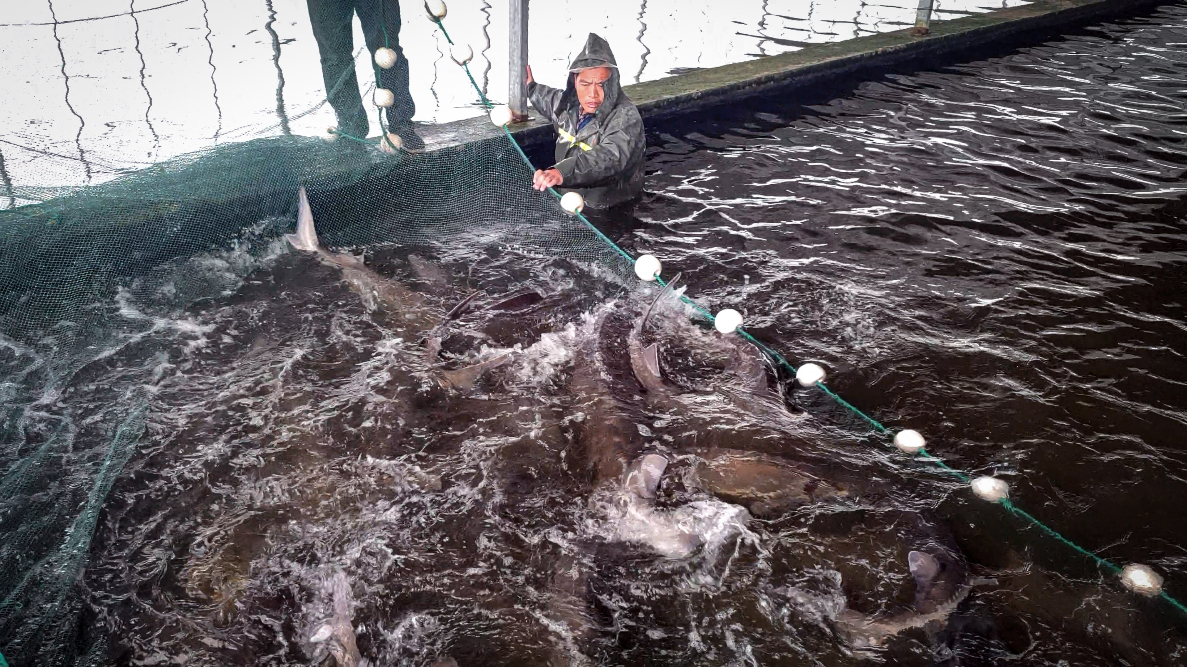 “这水产养殖,可不仅仅是换换水、喂喂食这么简单,需要依靠科技的力量,不断学习,不断创新。”宋洪良介绍,为进一步提升水产质量,他投资30万元建设了“渔业研发中心”“渔业科技成果转化基地”,经常邀请相关专家进厂开展技术培训,不断提高公司综合生产能力和劳动者综合素质。2022年,他又积极协调相关部门争取专项建设资金204万元用于扩大养殖规模,以提升水产质量,增强产品核心竞争力。如今的京宏年养殖鲟鱼30万尾,年销售收入1400余万元,安置就业30余人,成为当地乡村振兴的典范企业。