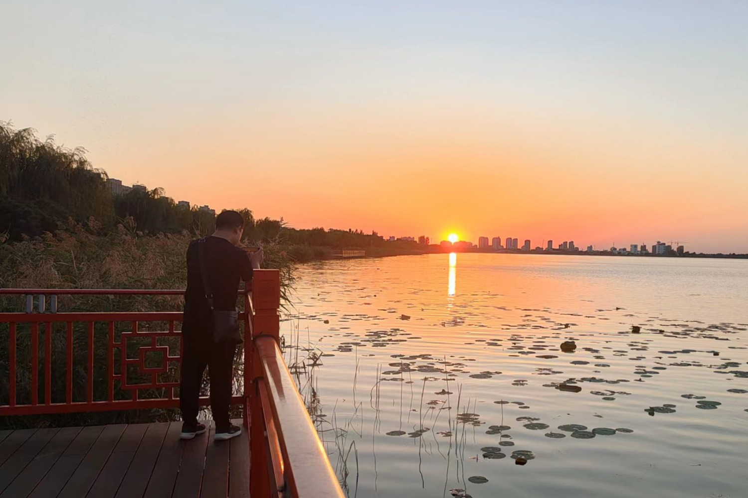 拍摄衡水湖落日。冀州区融媒体中心供图