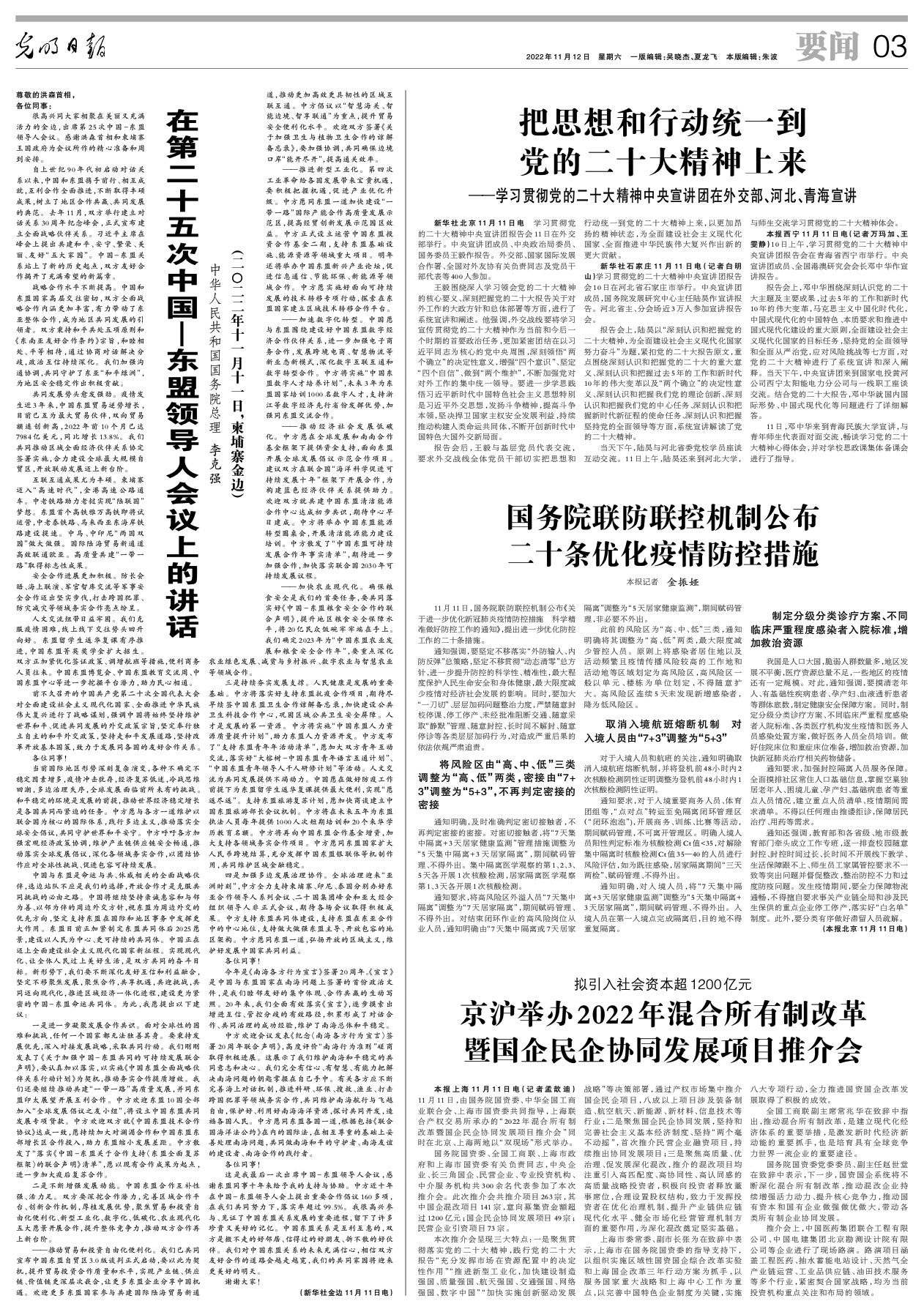 11月11日,国务院联防联控机制公布《关于进一步优化新冠肺炎疫情防控措施科学精准做好防控工作的通知》,提出进一步优化防控工作的二十条措施。