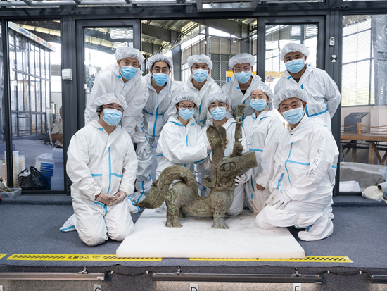 8月24日,三星堆8号坑提取大型神兽后全体工作人员在坑上合影。 余嘉/摄