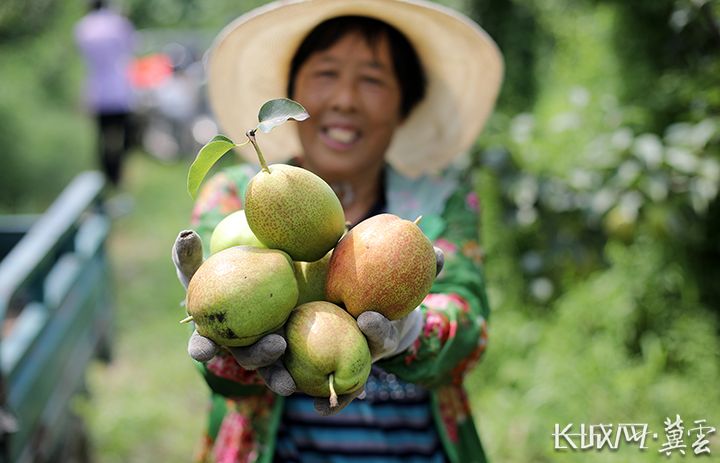 梨农展示刚采摘的密植梨。通讯员 陈康 摄