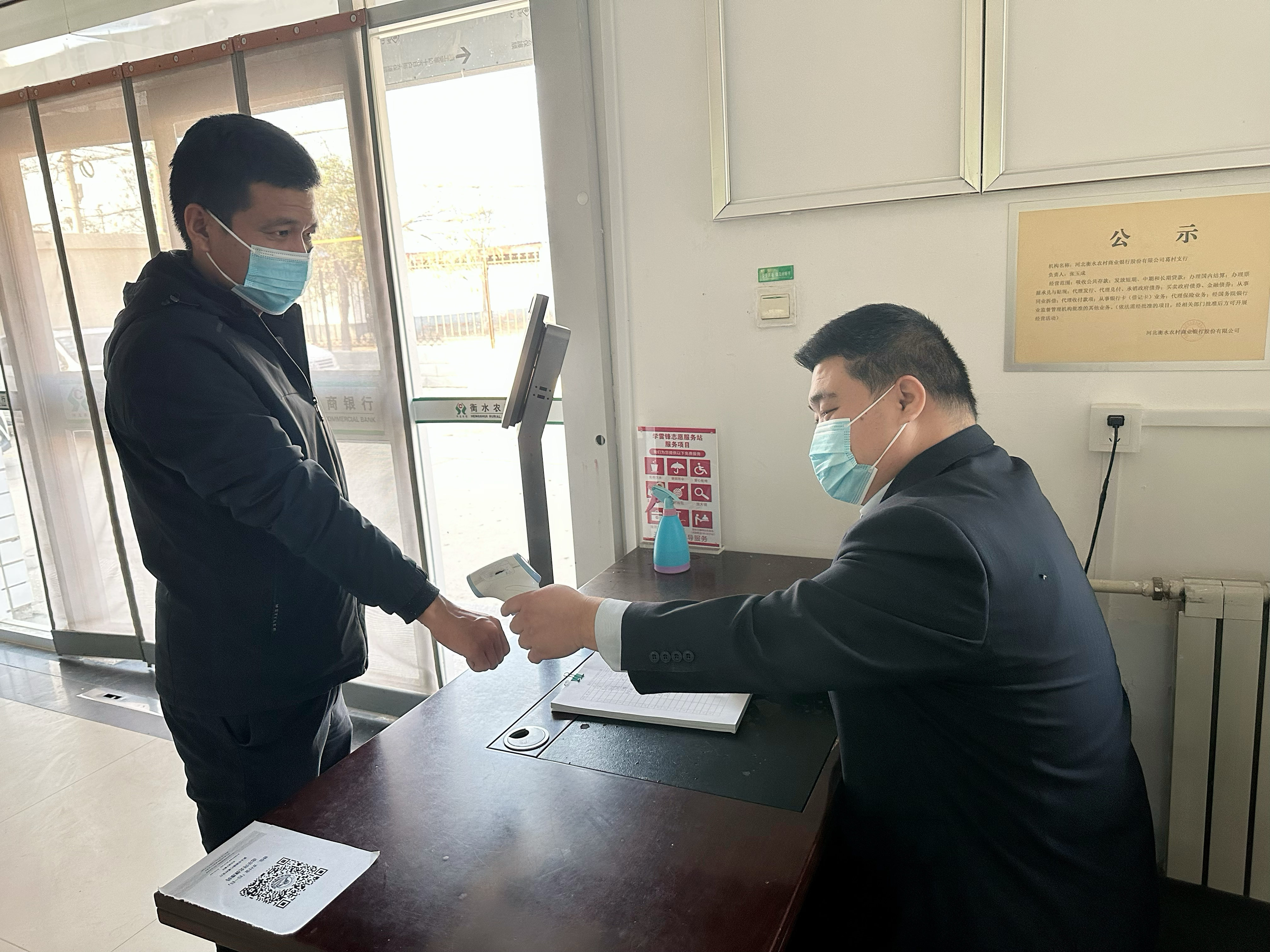 下发《工作人员疫情防控告知书》,加强对营业网点及办公场所出入人员管理,严格落实佩戴口罩、测量体温、健康码检查等常态化措施;持续做好营业场所消杀工作,特别是对柜台、自助银行、填单台、客户等候区等重点区域和设备设施进行消毒和清理,为客户提供可靠放心的服务环境。同时加强现金、食堂、快递、宿舍等管理及消毒,做好防疫物资储备,齐心协力,严防死守,坚决打赢疫情防控这场硬战。