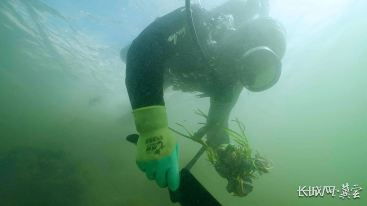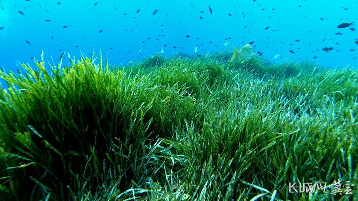 海面之下,海草舒展身姿,随波摇曳。“在这片海域,通过海草床修复和贝藻礁重建,海洋生物量比以前提高40倍以上。下一步我们还要扩大修复试验区面积,争取再多修复400公顷。”张振海言语中透露出初见成效后的喜悦。