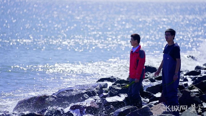 中国科学院海洋研究所研究员周毅(左一)望着修复后的海域,满是欣慰。长城网·冀云客户端记者 乔娅 摄