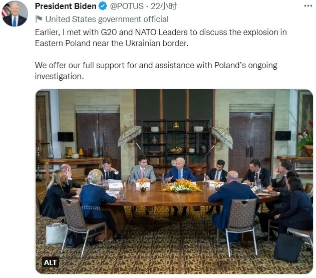导弹路径很可能超出了美国的心理预期,也就是飞到乌克兰以外了。这件事一下子就让美国站了起来,甚至影响了在印尼巴厘岛举行的G20峰会的既定议程。