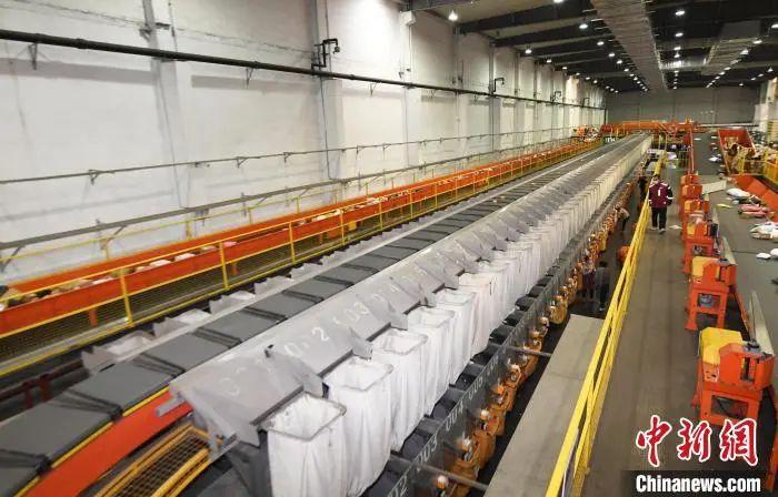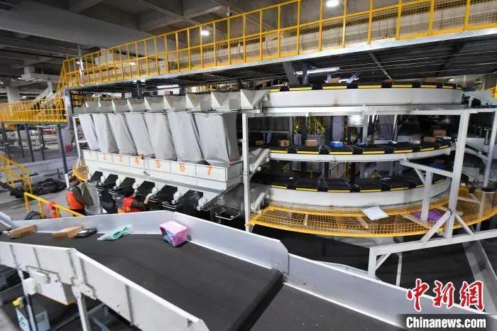 图为位于廊坊固安县的申通快递北方总部基地内,全自动智能化分拣流水线正高速运转。刘向 摄