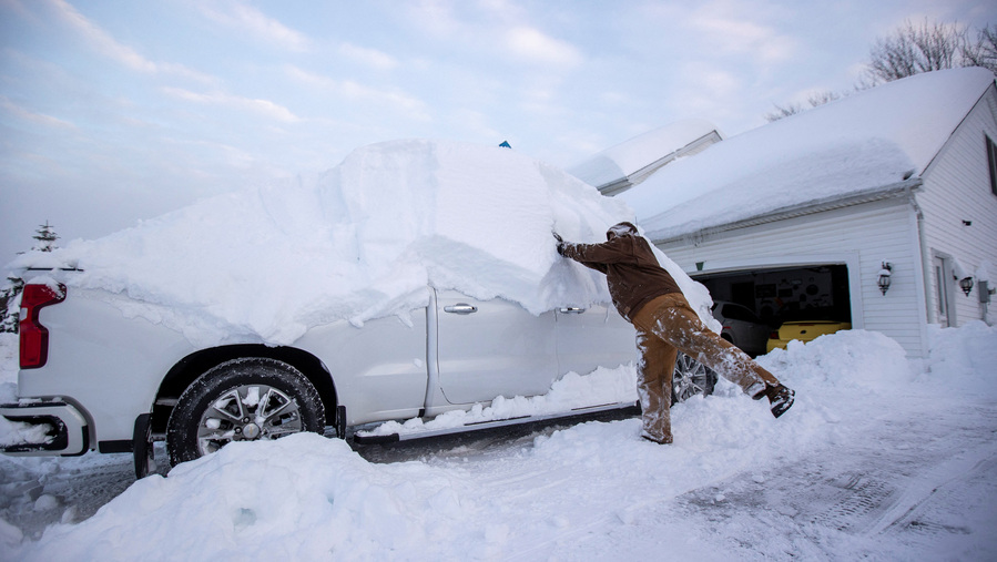 美国纽约州暴风雪持续,截至19日部分地区积雪厚度接近2米,民众出行受阻,3人因暴风雪丧生。