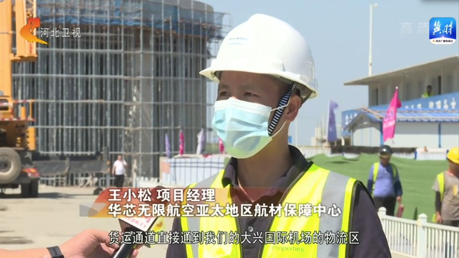 在河北自贸区大兴机场片区廊坊区域,华芯无限航空航材保障中心项目建设现场,上千名工人正在加紧施工,预计明年4月底投产,将成为亚洲一流的临空航材全产业链综合枢纽。