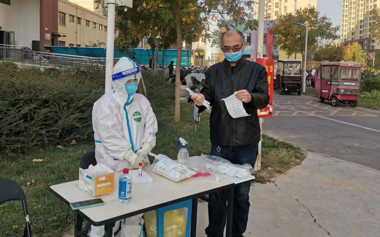 市综合检验检测中心刘建华在怡水社区仁爱诊所协助检测核酸