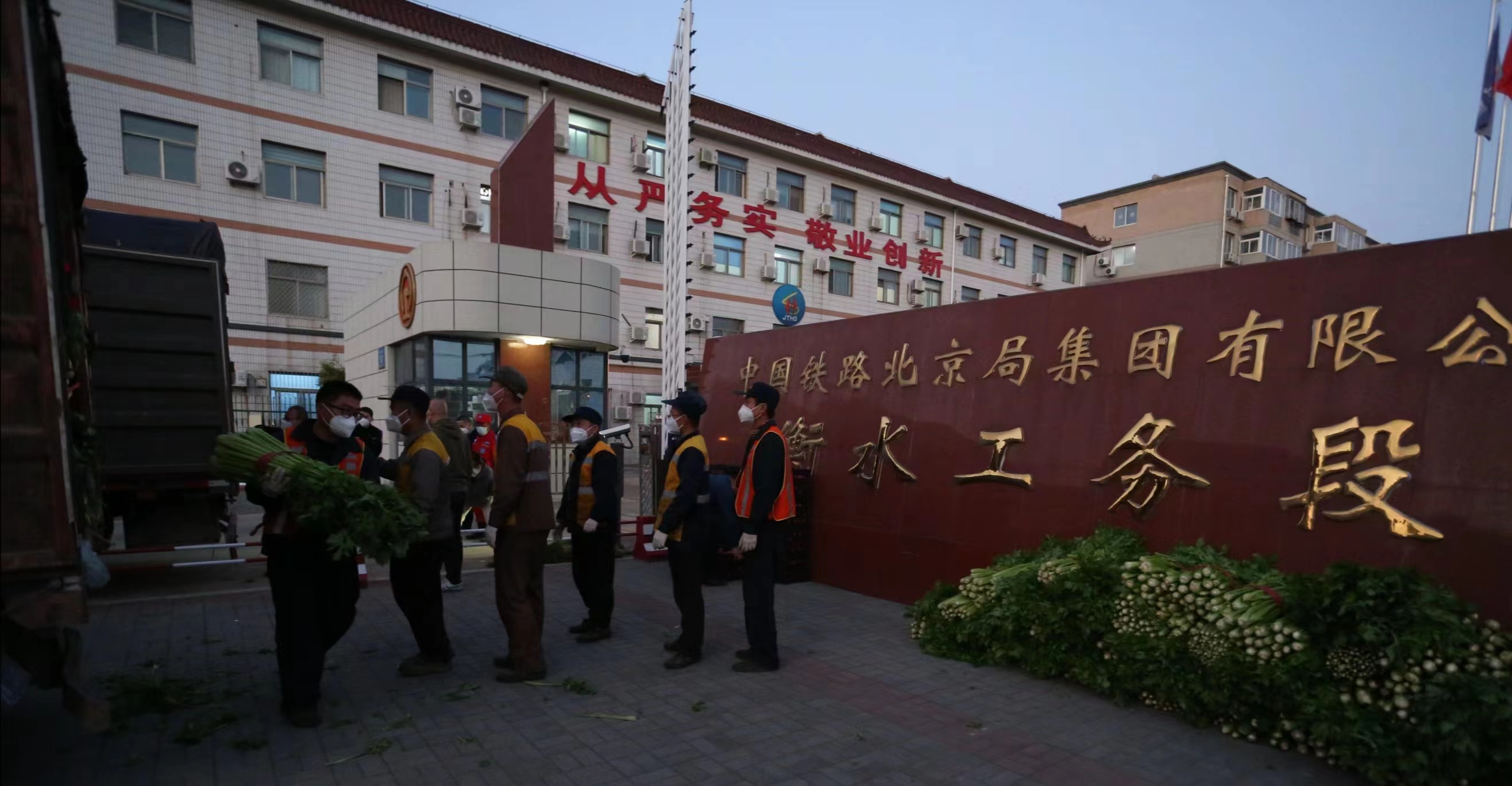 近期,衡水工务段600余名干部职工始终坚守一线,舍小家顾大家,为保障铁路运输安全畅通贡献着力量。为让铁路职工吃上新鲜蔬菜,更好地激发大家的干劲,饶阳县中天救援协会自发组织力量,从当地蔬菜基地采购了多个品种的蔬菜共2万斤,打包装车,运送至衡水工务段。衡水工务段精心组织,连夜将蔬菜配送、分发到衡水区域铁路沿线的12个伙食团,保证将新鲜蔬菜第一时间送上一线职工餐桌。