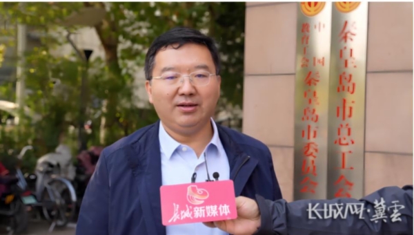 秦皇岛市总工会党组成员、副主席陈勇珲接受长城新媒体采访。长城网·冀云客户端记者 王震军 摄