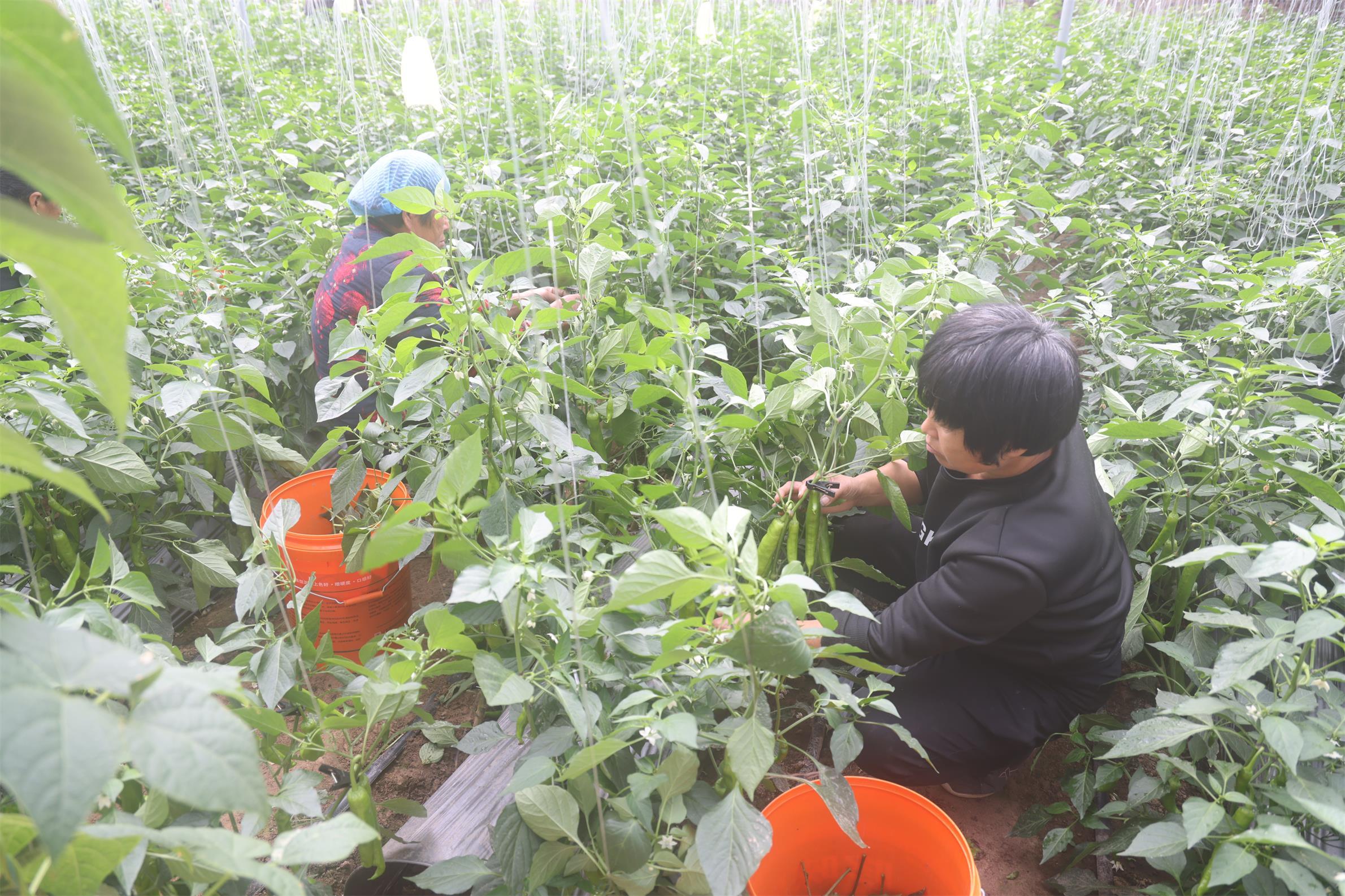 村民采摘辣椒。齐红雨 摄