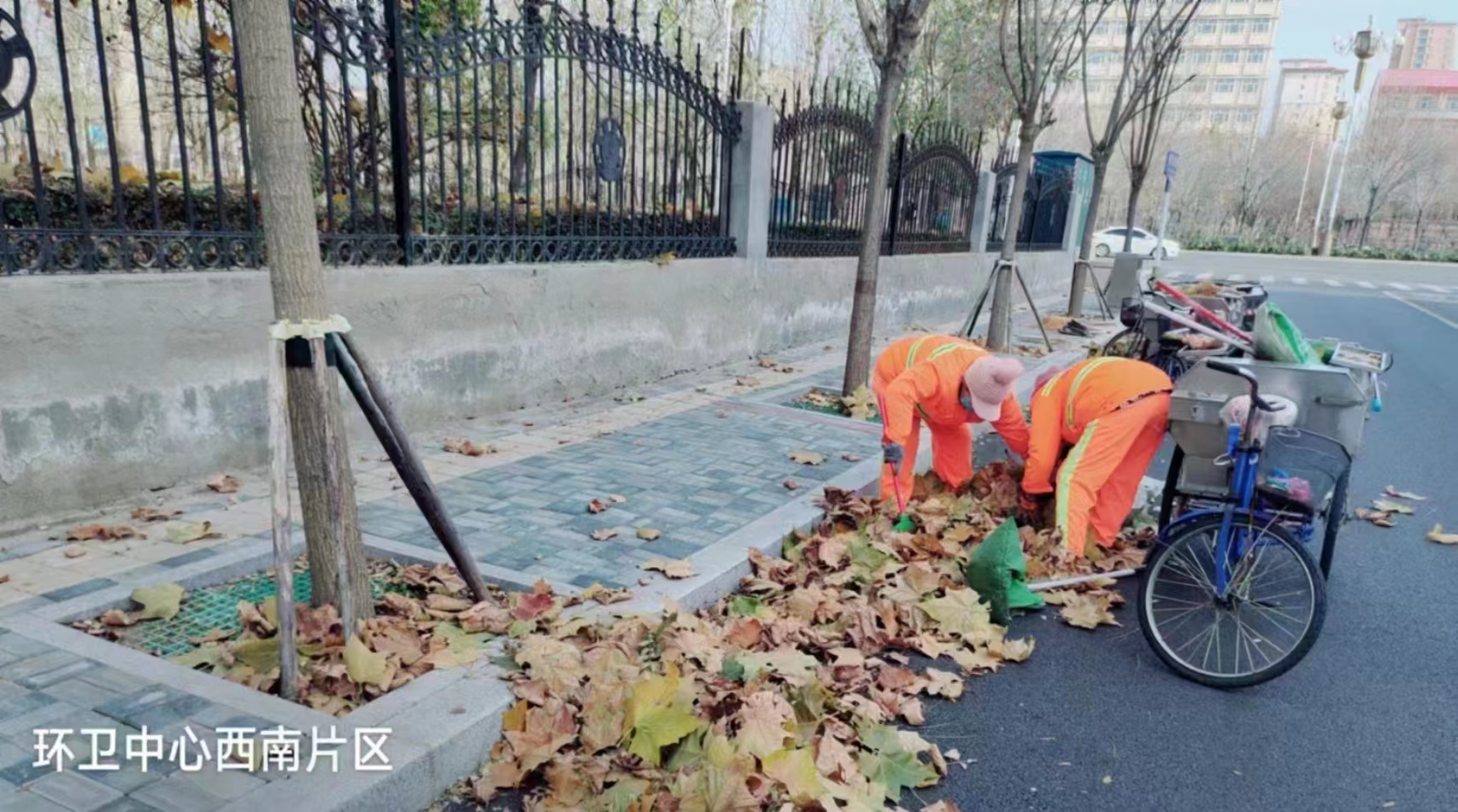 随着气温大幅下降,街道两侧落叶明显增多。为保证路面整洁,市环卫管理中心每天出动机扫车、小型机扫车100余台,加大机械化清扫保洁作业频次,对重点道路采取不间断巡回保洁、随落随扫方式,及时将墙根下、树根下、路牙石、水篦子口等易积存落叶垃圾的部位清扫干净。
